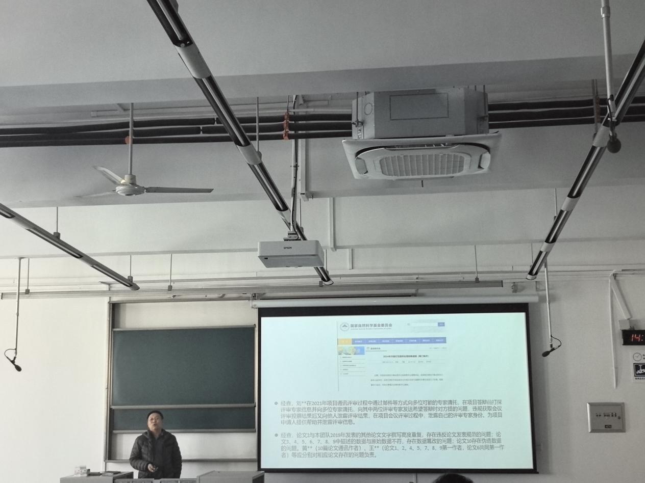 王璐副院长通报了学院年度科研取得的成绩,鼓励广大教师再接再厉,并进行科研诚信警示教育。通过案例,使大家深刻认识学术不端的危害性,明确学术不端标尺,进一步端正科研学术观。