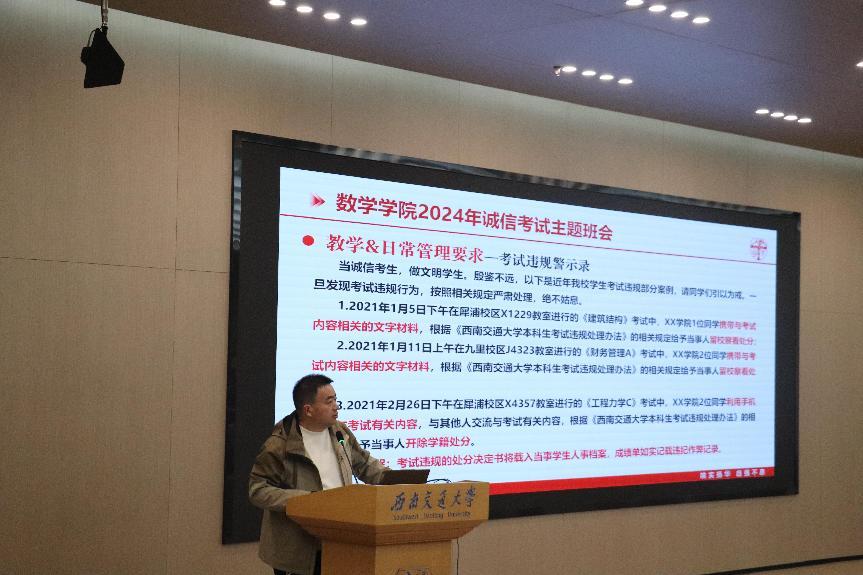 黄祥副书记主持召开了kaiyun开云官方网站2024年诚信考试主题班会。他强调,考试不仅是对学生学习成果的一次测试,更是对个人品德和学术操守的一次考验。通过引用实际教学案例,黄书记详细阐述了学校关于考试纪律的各项规章制度,深刻地向同学们揭示了考试违规所带来的严重后果,起到了良好的警示作用。随后,吕薇老师进行阶段性学情分析及学习情况总结。通过详细的数据对比,清晰地展示出各专业、各班级在学习上的优势与不足,点明共性问题并给出了具体的改进措施。她鼓励同学们弥补不足、改进方法,争取在期末考试中取得满意的成绩。