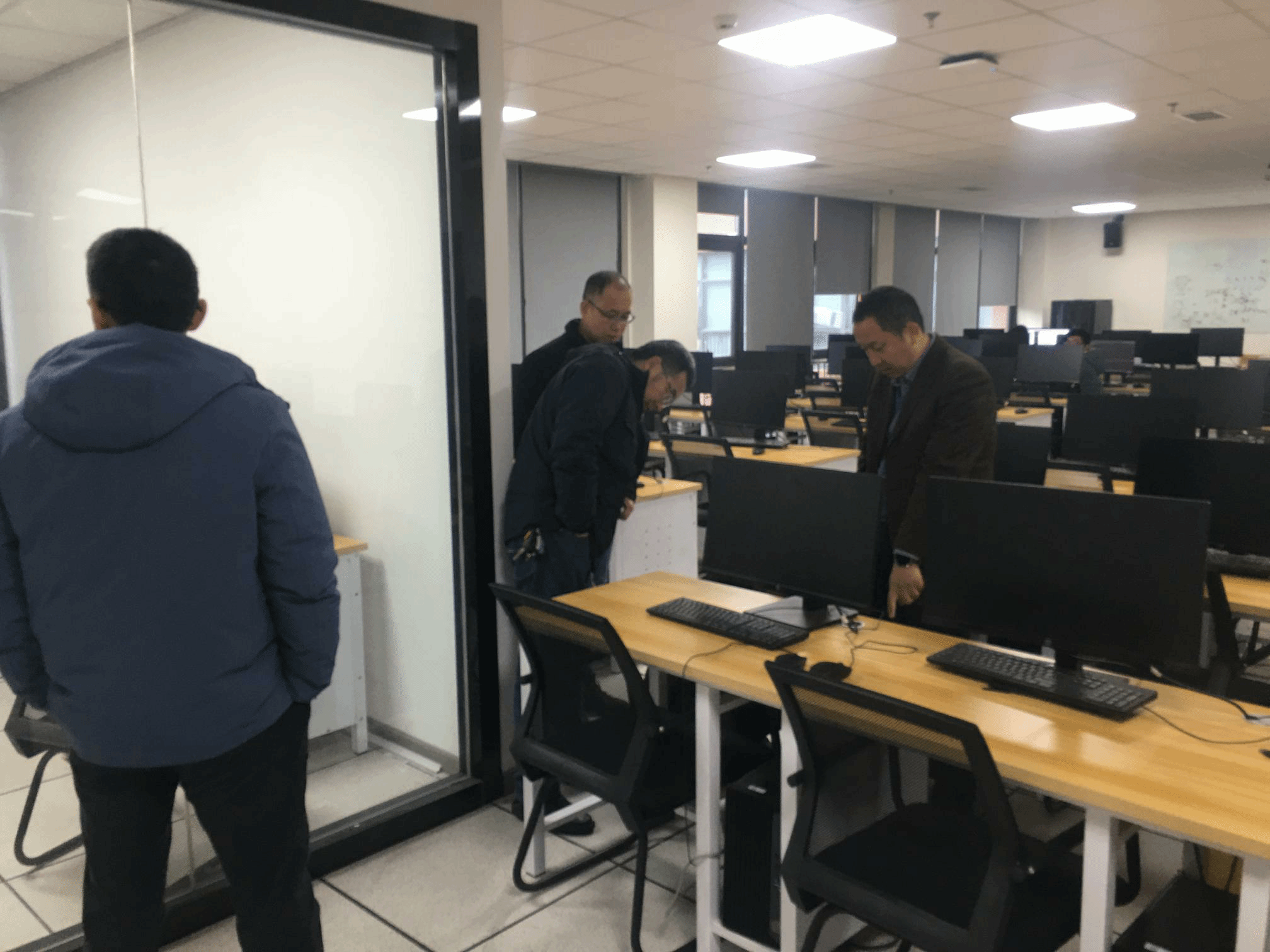 检查组来到教师工作间,就室内的安全卫生与使用管理提出了具体要求:严格执行安全卫生管理责任制度,有序合理安排新进教师以及职称提升教师的工作座位,切实美化教学科研的育人环境并提高使用效率,叮嘱老师们假期离开办公室要关闭室内电源,锁好门窗。