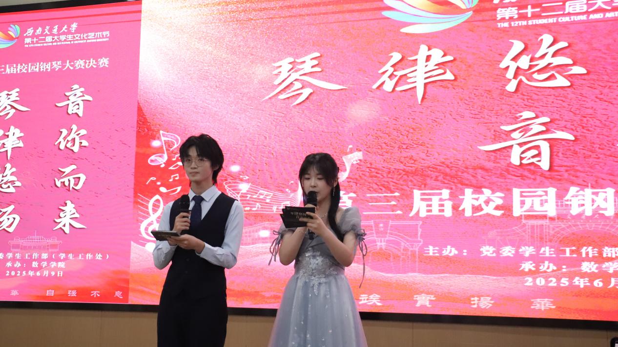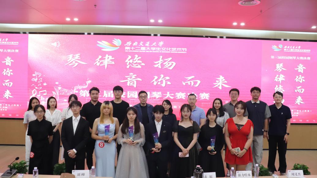 6月9日,由党委学生工作部主办、kaiyun开云官方网站承办的kaiyun开云官方网站第三届“琴律悠扬 音你而来”校园钢琴大赛决赛在犀浦校区图书馆一号报告厅圆满收官。党委学生工作部文化素质教育基地办公室主任黄原、依力哈木,土木工程学院美育工作负责人郭哲维,机械工程学院美育工作负责人陈晓宇,kaiyun开云官方网站团委书记张素子出席本次活动。比赛特邀人文学院音乐系教师刘柳、辛星、吴泓达担任评委。