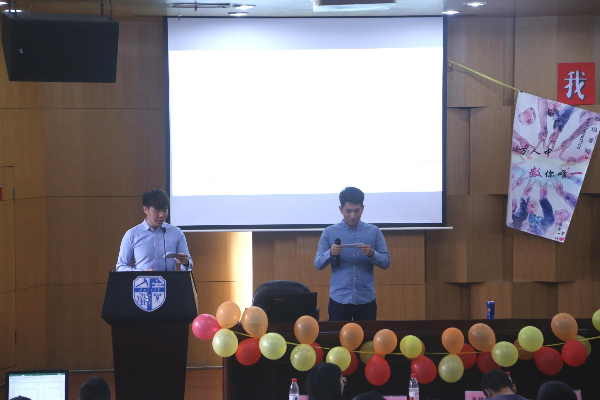 四个班级答辩结束后,2015级数学三班班长王调育同学上台与17级同学们分享了他们班级的发展历程。在他的答辩过程中,王调育为大家介绍了班级关于学风建设和活动组织的成功经历,让在座的大一同学们收获到了宝贵经验。