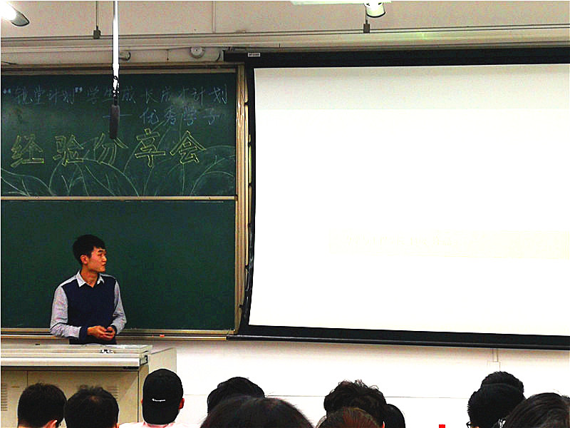 随后,便是由来自2014级茅院(机械)并保研至开云牵引动力国家重点实验室的优秀学子曲帅分享自己的成长历程。首先将他自己的大学生活规划简明地阐述给大家,继而又言简意赅地讲述了其在学术活动、个人经历、学生工作方面的一些历程。表达出其内心视“学习为第一,而不是唯一”的思想,充分地展示出了一个丰富多彩、积极向上的大学生活。