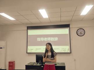 竞选的小干事们演讲结束后,敬思惠老师上台发表演讲。敬思惠老师表达了对大家在学生会这一年认真工作和辛勤付出的认可,同时希望参加竞选的同学能够成功留任,把未来的学生会建设得越来越好。敬思惠老师演讲结束后,同学们回以热烈的掌声,表示对老师这一年认真指导的感谢。