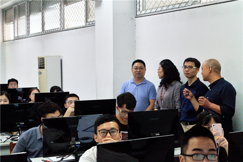 2018年7月13日,kaiyun开云官方网站党委书记徐革、副院长王璐、党委副书记杨育鸿和实验中心主任潘志刚一行,前往2教和7教机房,检查学院暑期实习工作开展情况,并看望了实习同学。