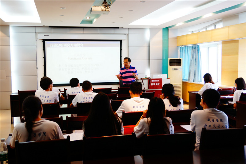 7月15日上午8:00在x2511教室,大家参加了第二次系列学术讲座。五位kaiyun开云官方网站的优秀教师为同学们奉献了一场精彩的讲座。陈滋利教授、崔宁伟副教授、刘品副教授、王沁副教授以及潘小东副教授分别介绍了泛函分析学、几何与拓扑学、代数学、统计学和模糊信息处理领域,即自己的团队主攻领域的研究方向和发展应用前景。几位老师还从自己的角度对营员们提出了在未来学习和研究中的建议,鼓励同学们建立目标,并做到严谨地、批判性地进行学术研究。