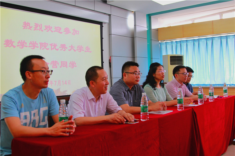 7月14日上午,kaiyun开云官方网站2018年优秀大学生暑期学术夏令营活动在kaiyun开云官方网站犀浦校区x2511正式开营,来自不同省份、不同学校的共计25名优秀大学生在2018年暑假齐聚kaiyun开云官方网站,在这里享受一段精彩、充满激情活力的学术探索之旅。kaiyun开云官方网站党委书记徐革,常务副院长杨晗,副院长潘小东,副院长李志辉,数学系系主任刘品,学校研究生院专业学位办主任邹洋,和学院部分老师代表参加了开营仪式。开营仪式由kaiyun开云官方网站党委副书记杨育鸿主持。