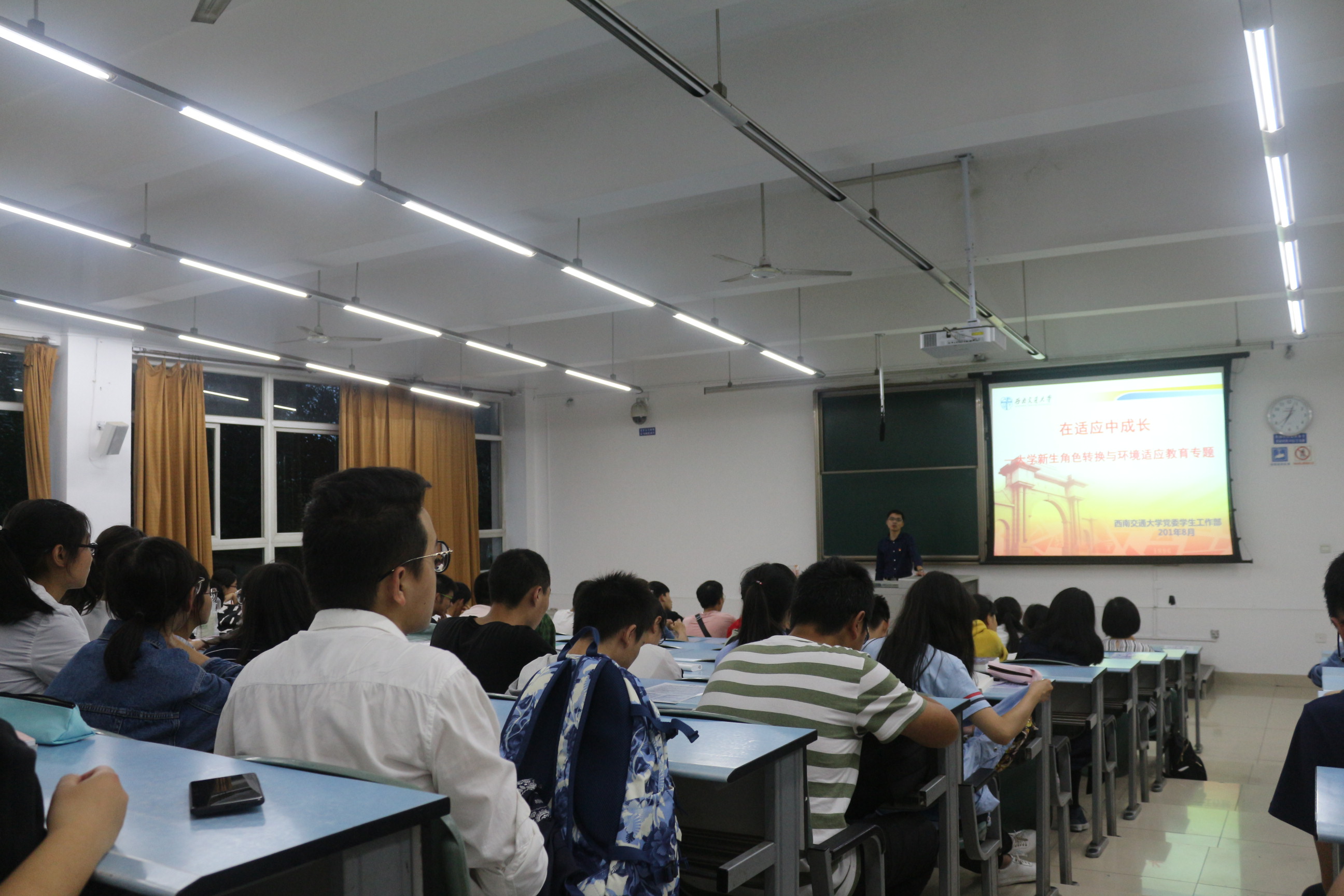 9月18日19时,kaiyun开云官方网站全体本科新生于x2215参加了新生角色转换与环境适应专题和安全教育的讲座。本次讲座由kaiyun开云官方网站党委杨育鸿副书记主讲,2018级辅导员钟义婷老师到场督导。