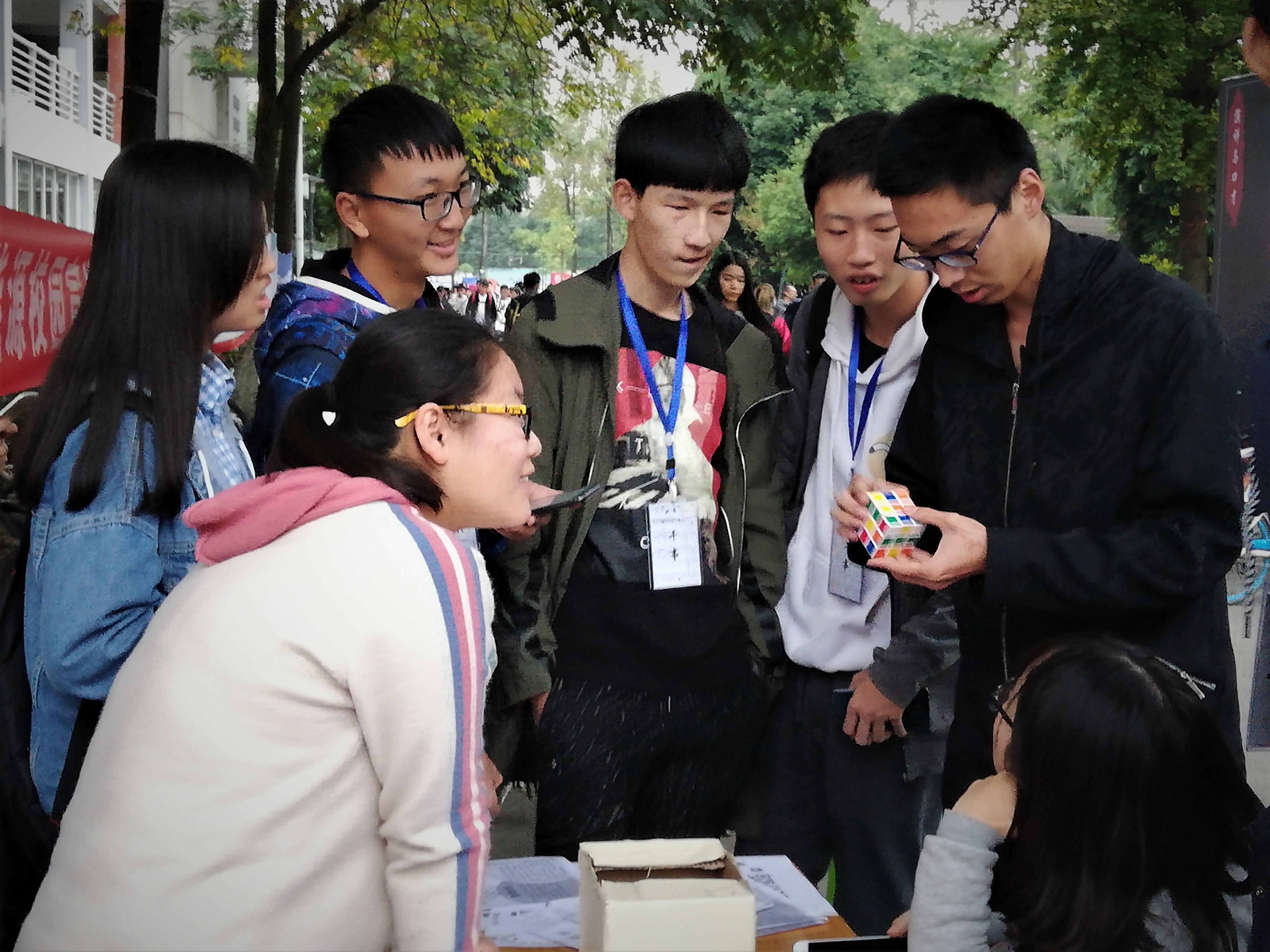 宣传活动主要通过开展名为“数钱大作战”、“扑克牌计算”和“速拧魔方”的游戏,引起大众对数学文化节的兴趣。参与游戏者需要在规定时间内完成以下的一个任务:一、数清自己从盒中抓出的硬币个数;二、按照一定的方式来计算扑克牌的点数;三、还原魔方。许多路过的学生都被精彩刺激的游戏与丰厚的奖品所吸引,纷纷踊跃参加游戏。在游玩者的欢声笑语中,“数学文化节”也得到了广泛的宣传。