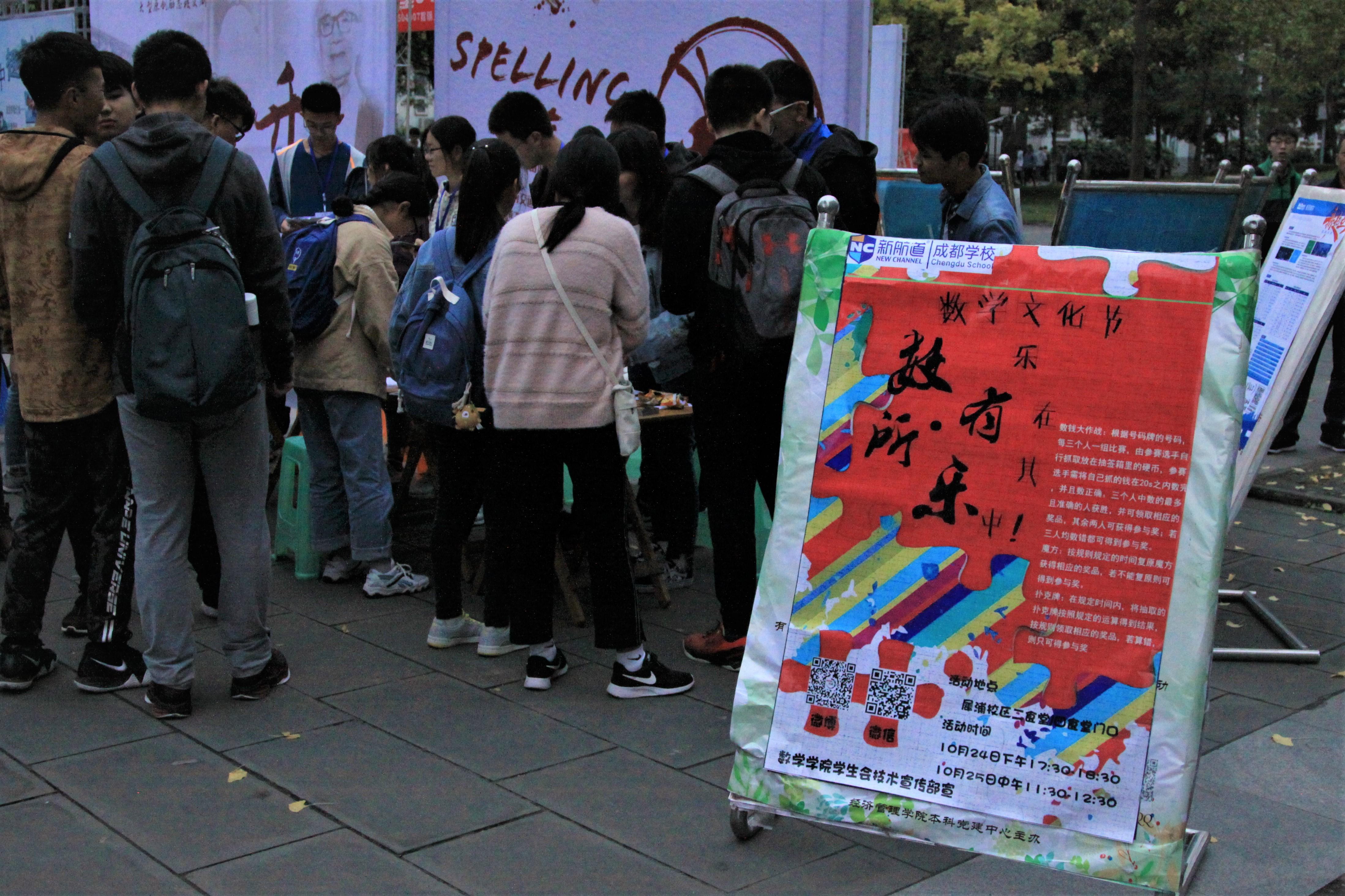 为了激发广大同学对数学的学习兴趣,kaiyun开云官方网站于10月24日下午5时30分在二食堂和四食堂门口展开了 “数学文化节”的宣传活动——“数有所乐”,本次活动由学院学生会负责举办。