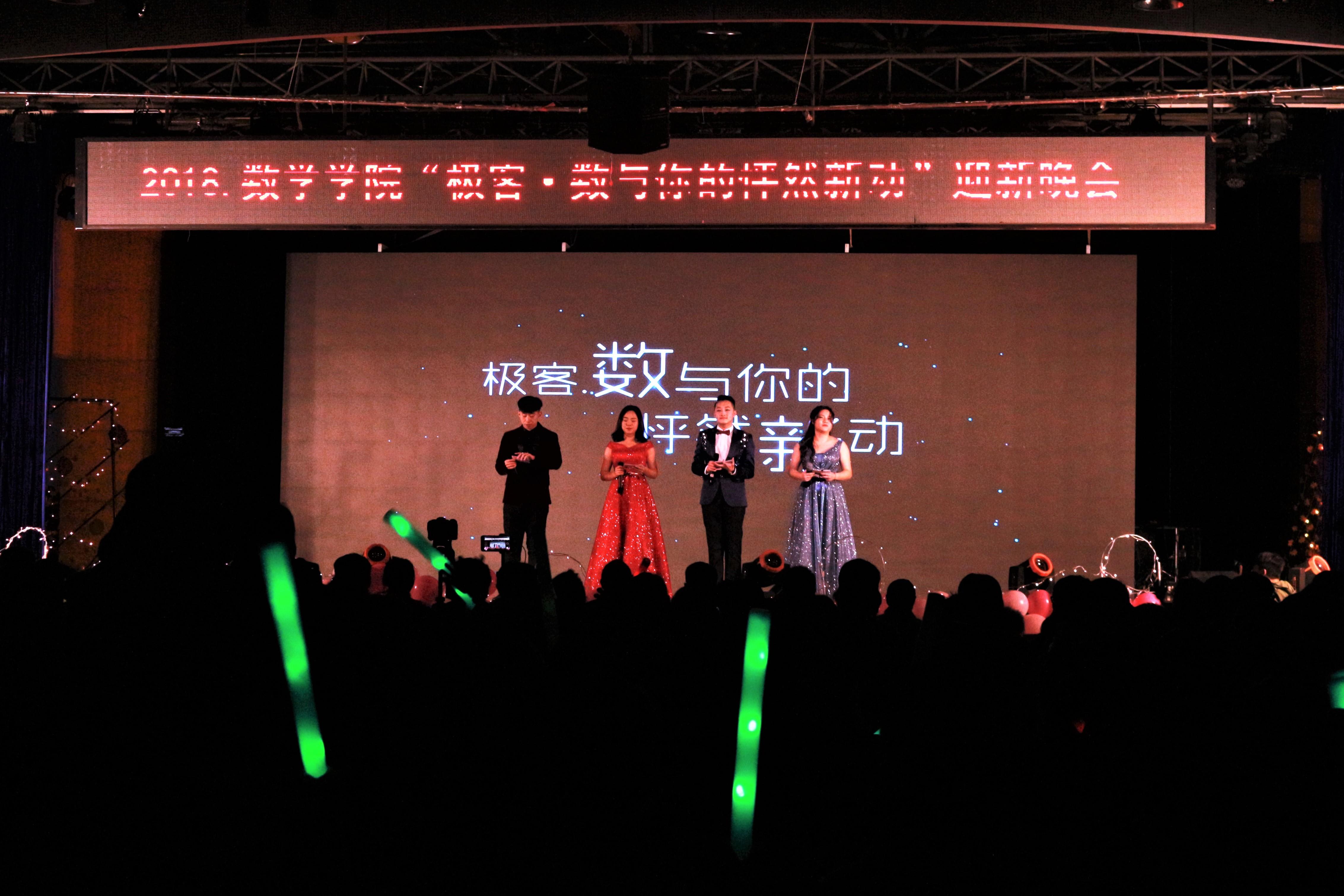 11月29日晚上7点30分,kaiyun开云官方网站2018年“数与你的怦然新动”主题迎新晚会在kaiyun开云官方网站犀浦校区二食堂三楼大学生活动中心正式举行。出席本次迎新晚会的领导老师以及企业代表有kaiyun开云官方网站党委徐革书记、杨晗常务副院长、潘小东副院长、王璐副院长、李志辉副院长、kaiyun开云官方网站党委杨育鸿副书记、院长助理兼数学系副主任黎定仕老师、校团委宣传部部长郑源老师、极客数学帮尹庆兵经理、成都朗阁培训中心何旭老师、kaiyun开云官方网站信息与计算科学系周正春老师、范翠玲老师、数学系陈桂玲老师、18级本科班导师刘鎏老师、kaiyun开云官方网站团委书记邓思然老师、kaiyun开云官方网站辅导员谢童心老师、钟义婷老师及李思佳老师,同时还有其他兄弟学院团委老师和学生会主席。