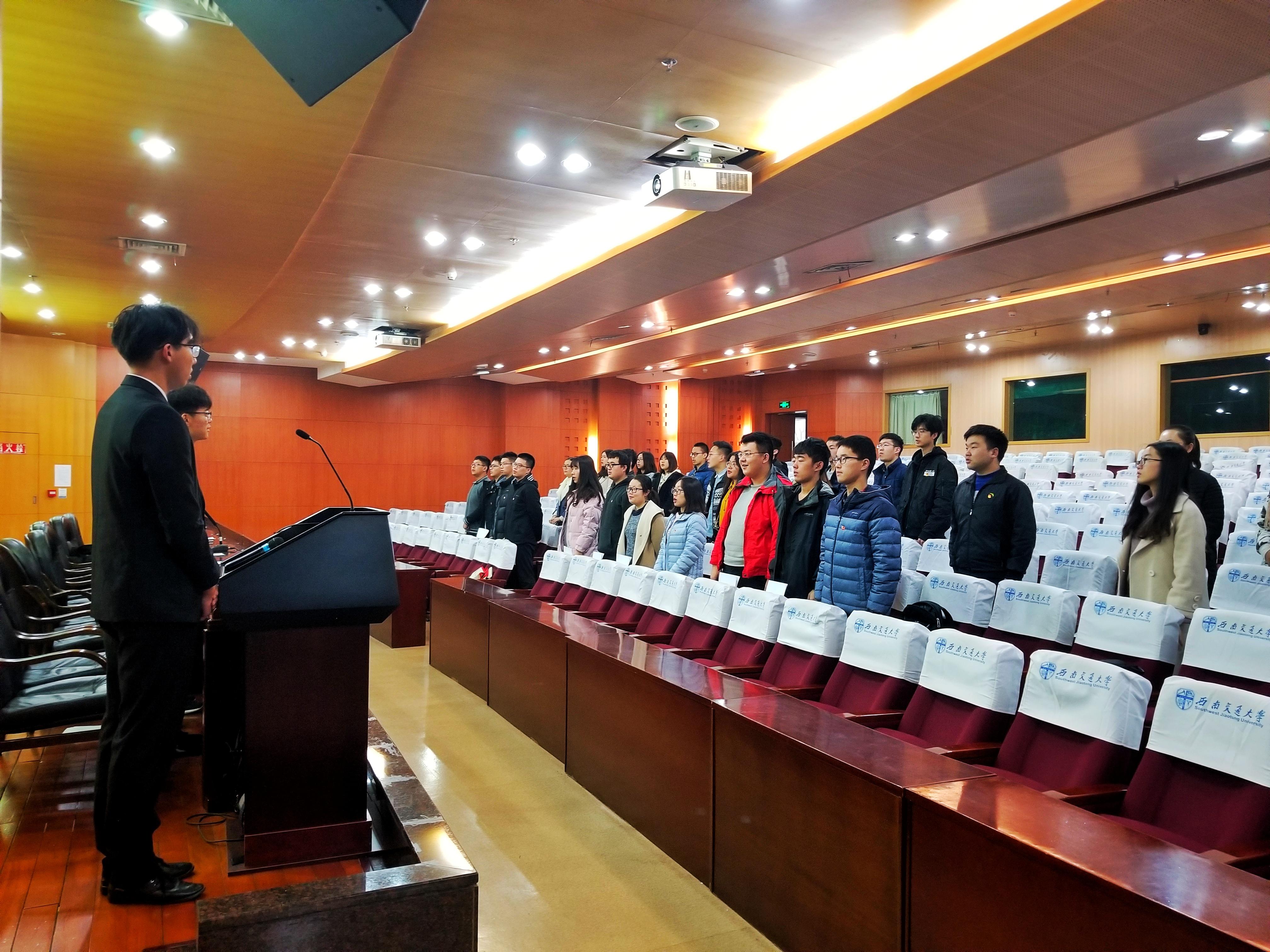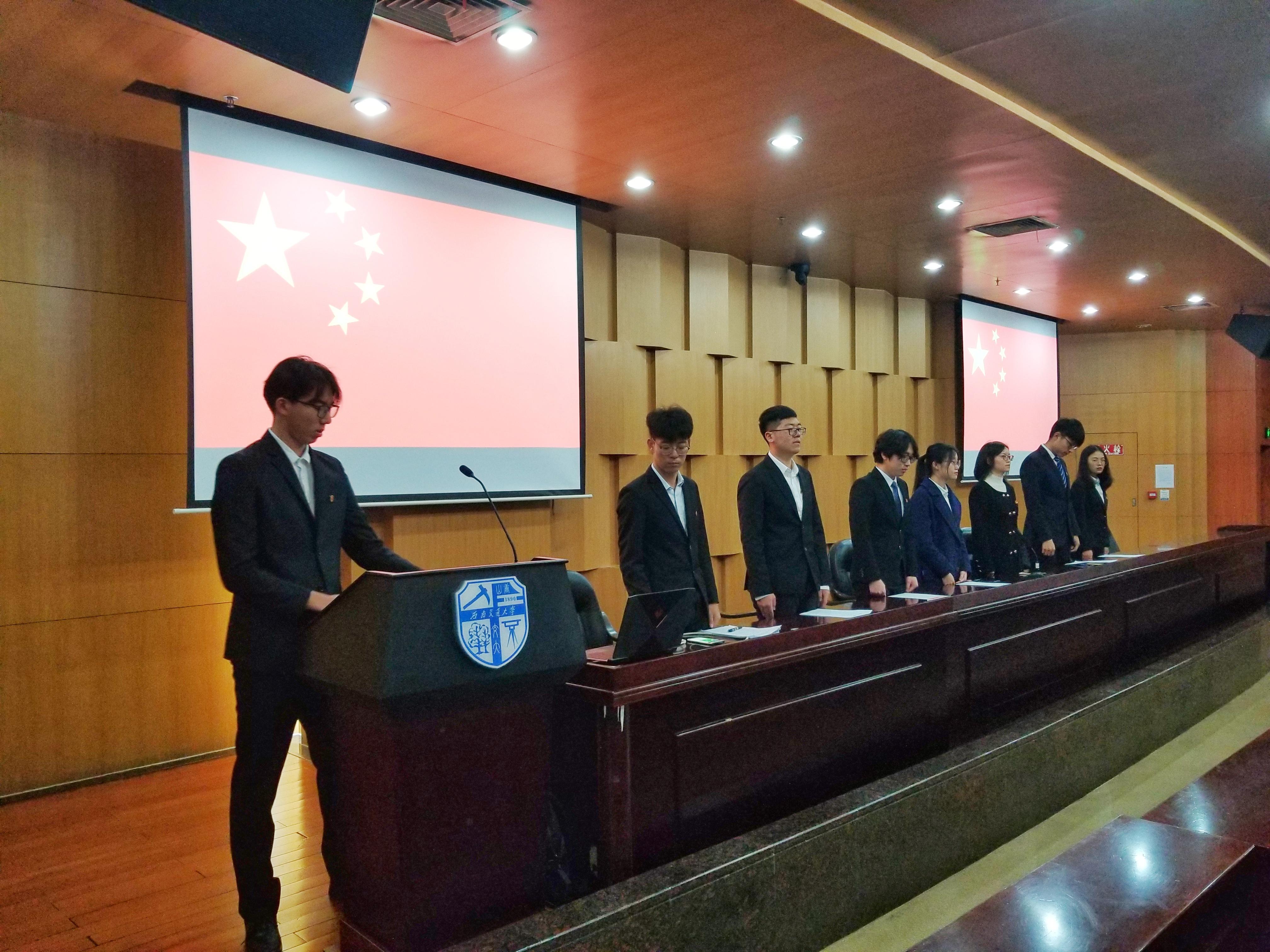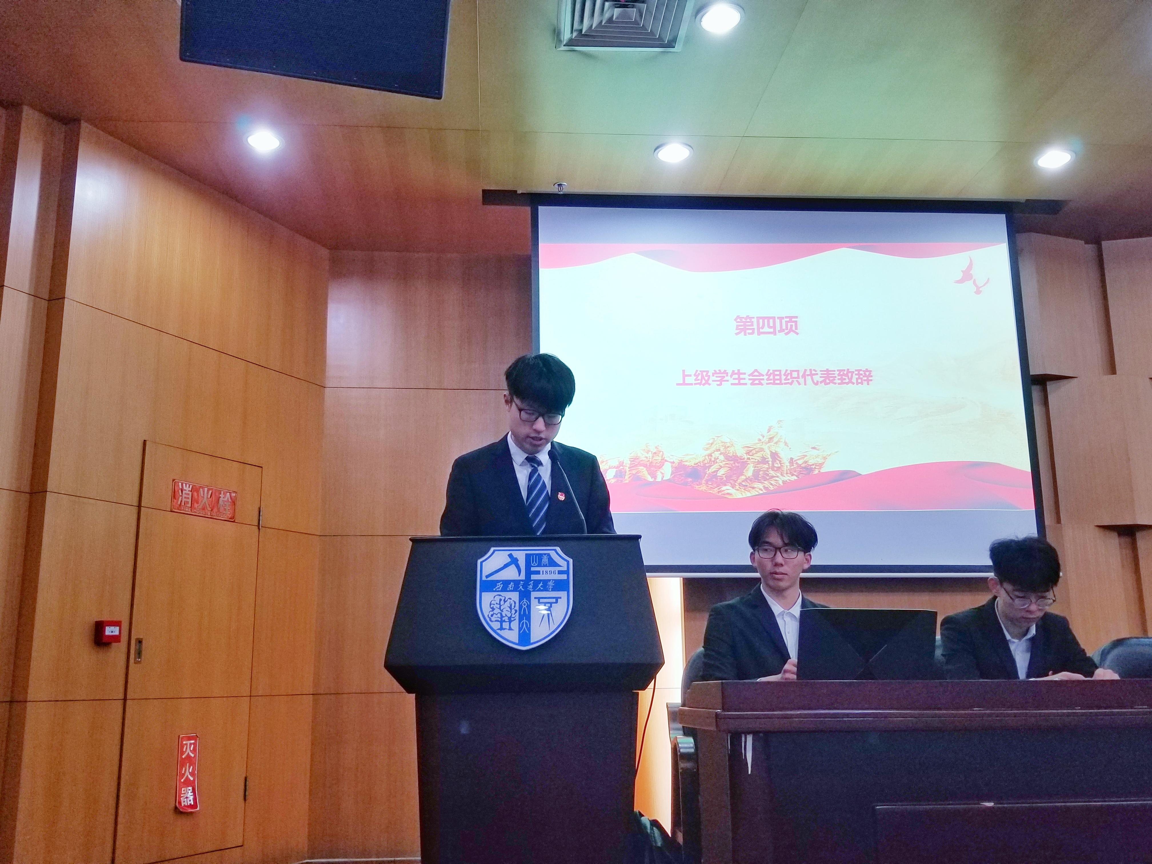 首先进行了本次学生代表大会的开幕式。全体起立,奏唱国歌。主持人介绍了与会的领导嘉宾,接着,kaiyun开云官方网站团委书记邓思然老师针对本次大会发表了讲话,上级学生会组织代表、校学生会主席赵天胤也为本次大会致辞。