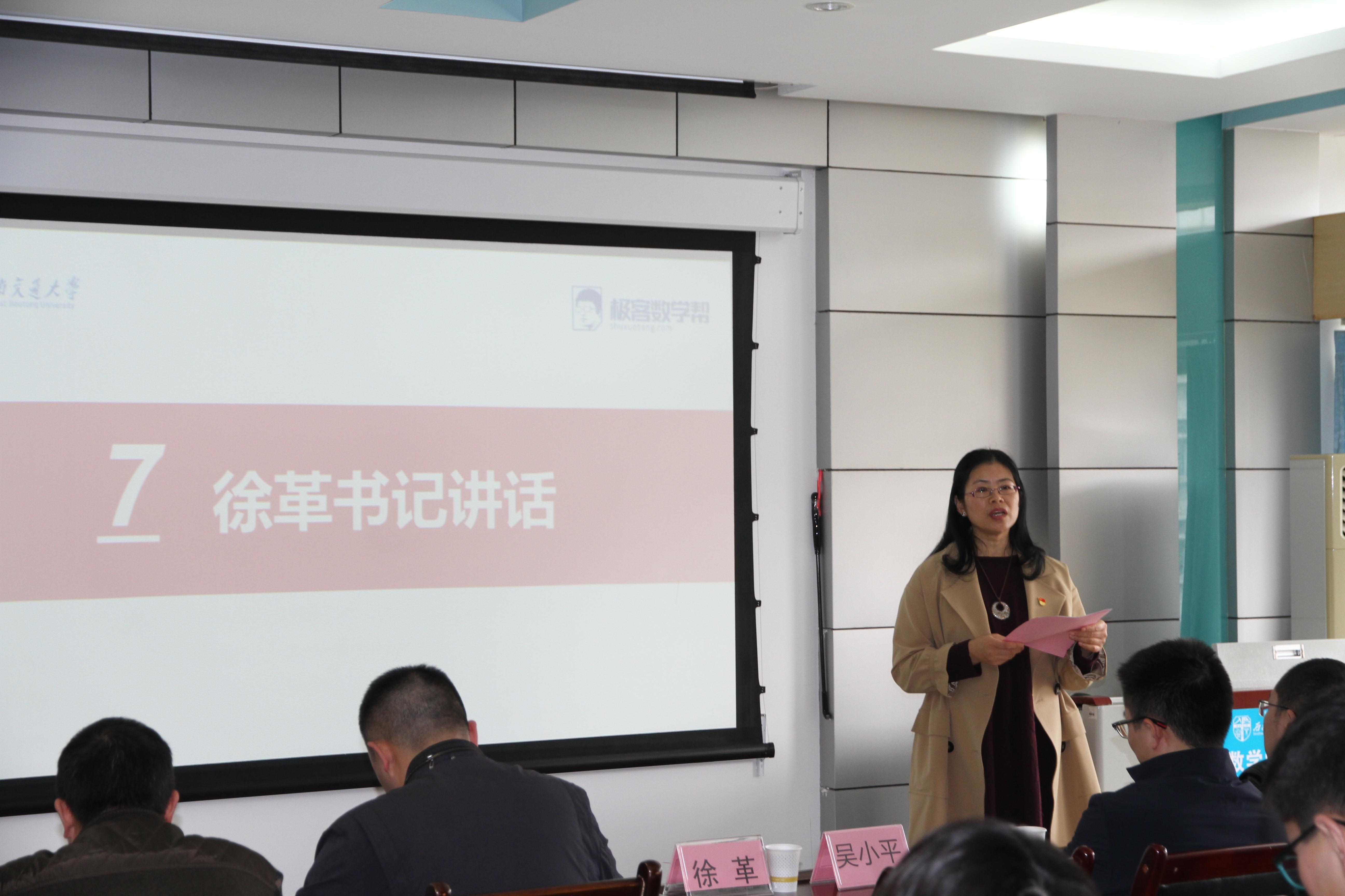 随后,kaiyun开云官方网站党委徐革书记进行了总结讲话。首先徐书记向学校和极客数学帮对学院的发展支持表示了感谢,随后向大家介绍了kaiyun开云官方网站强大的师资力量、近年来kaiyun开云官方网站学生在各种竞赛的获奖情况、各类科研科创取得的良好成果以及毕业生就业深造情况,同时也对吴小平总经理提出的三个方面共同点表示赞同,也希望在未来kaiyun开云官方网站和极客数学帮有更多的合作。最后,徐革书记也鼓励获奖的学生可以再接再励,始终牢记交大精神,砥砺前行,希望kaiyun开云官方网站的同学们在学业优异的同时也要心怀感恩,回报社会。