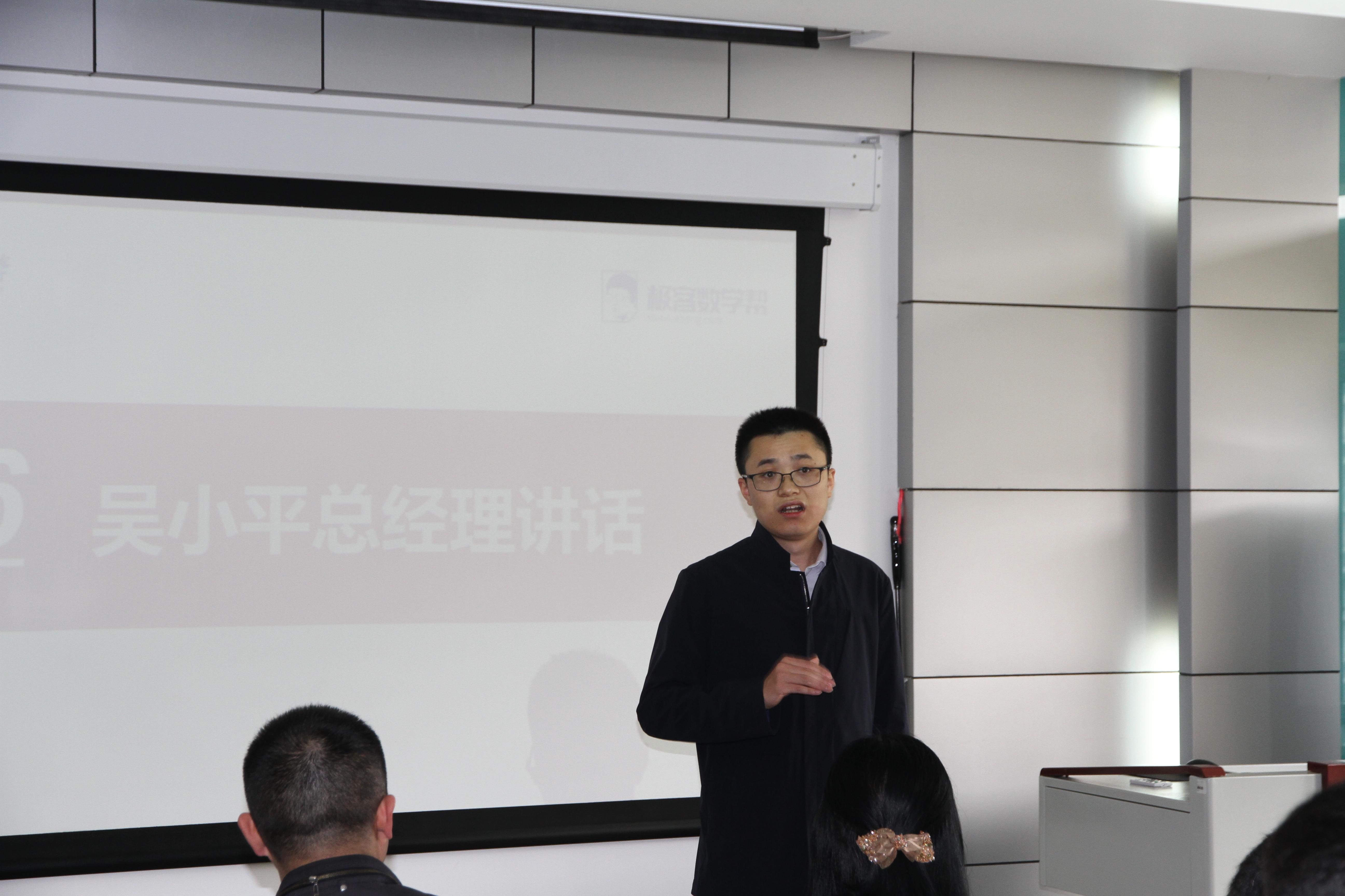 在此之后极客未来教育科技有限公司总经理吴小平先生代表极客数学帮进行了讲话,吴经理首先祝贺了获奖学子,对学校和学院老师们的辛苦付出和栽培表示感谢,之后便向在场的同学们详细介绍了极客数学帮并指出其与kaiyun开云官方网站在教学理念、教育方式、和人才培养这三个方面是有着很大的共同点——“让优秀的人从事教育,让从事教育的人更加优秀,让优秀的人培养更优秀的人”,并希望将来也能与kaiyun开云官方网站从这三个方面开展更多的合作。