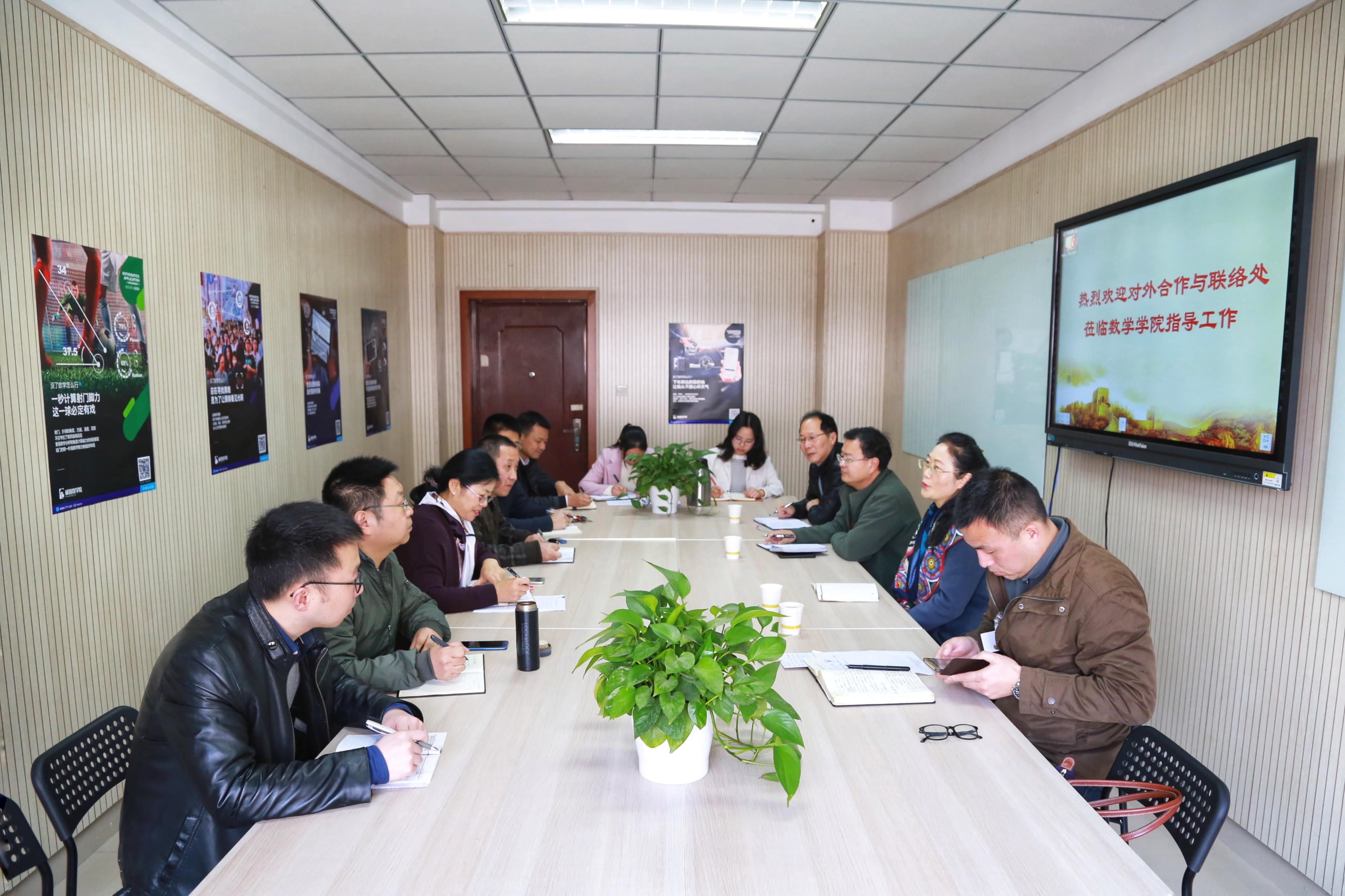 3月2 7日上午9点,对外合作与联络处一行赴数学数学开展对外合作及筹资工作调研。参加此次调研的kaiyun开云官方网站副校长朱健梅,对外合作与联络处处长谭建鑫、副处长潘昱,科学技术发展研究院院长助理陈伟庆,kaiyun开云官方网站党委书记徐革,常务副院长杨晗,副院长潘小东、王璐、李志辉,院长助理黎定仕,学院办公室孔延花、学工组钟义婷出席了会议。
