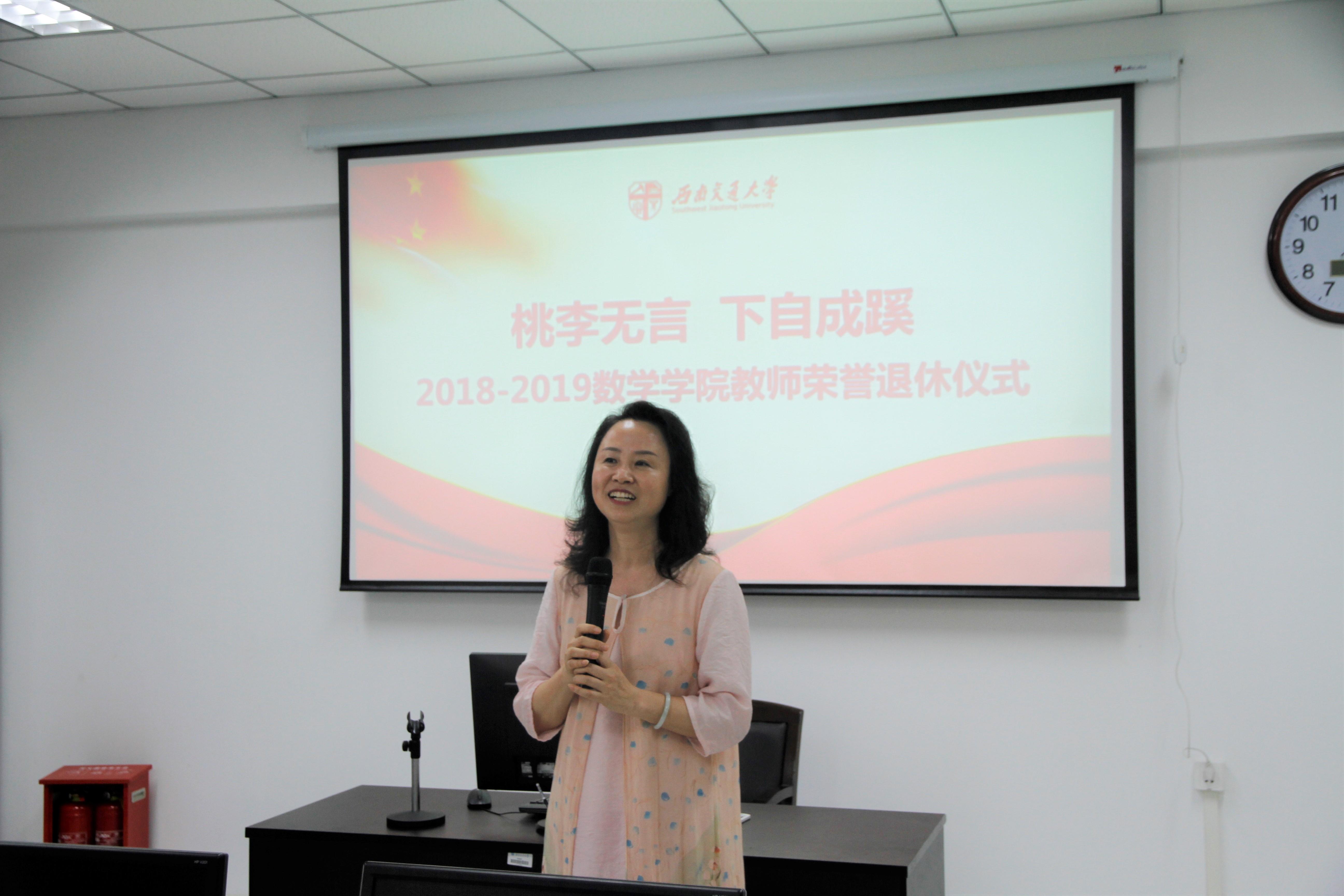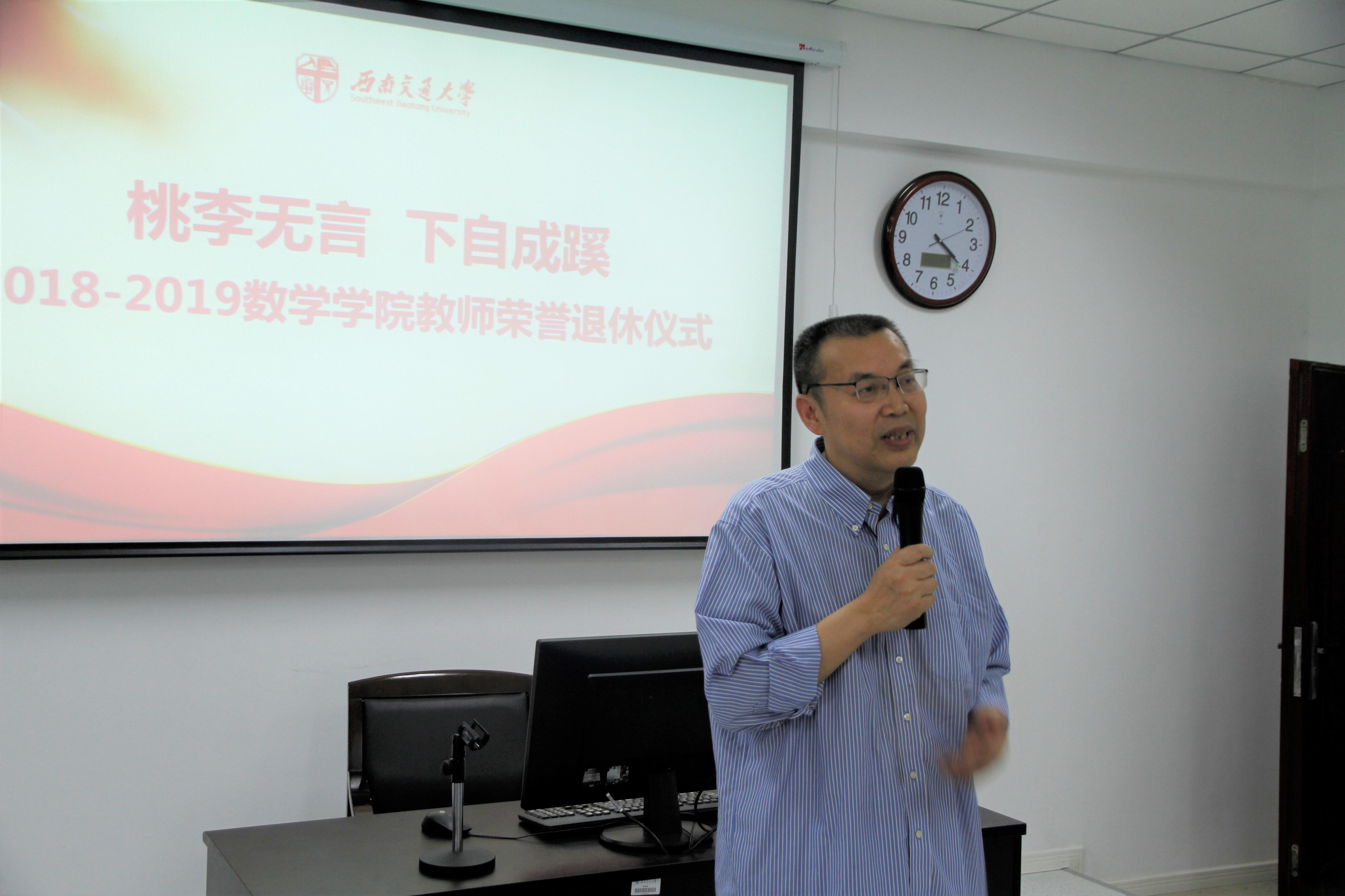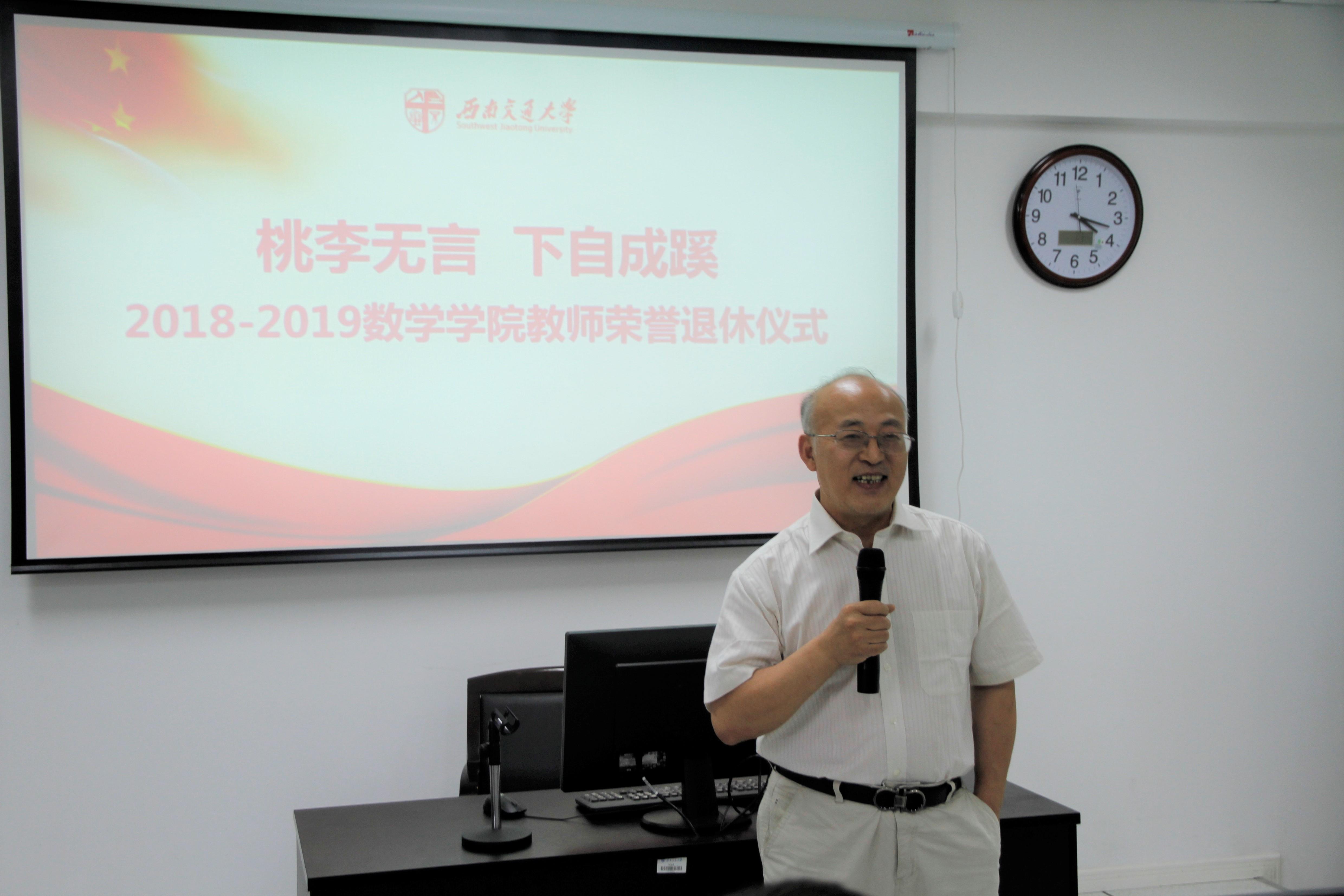 随后,kaiyun开云官方网站党委书记徐革教授向退休教师们致辞。徐书记代表学院充分地肯定了老教师们多年来在教育事业上所做出的贡献,对几位教师的光荣退休表示了真诚的祝贺。书记在讲话中提到,学院真诚地希望退休老同志在保重身体,颐养天年的同时,继续发挥余热,关心和支持学院工作,为学院各项工作献计献策,做到“退而不休”。此外,徐书记指出学院也将更加重视敬老爱老的工作,努力使退休老师们老有所养、老有所学、老有所为,享受天伦之乐,拥有一个充实幸福的晚年。