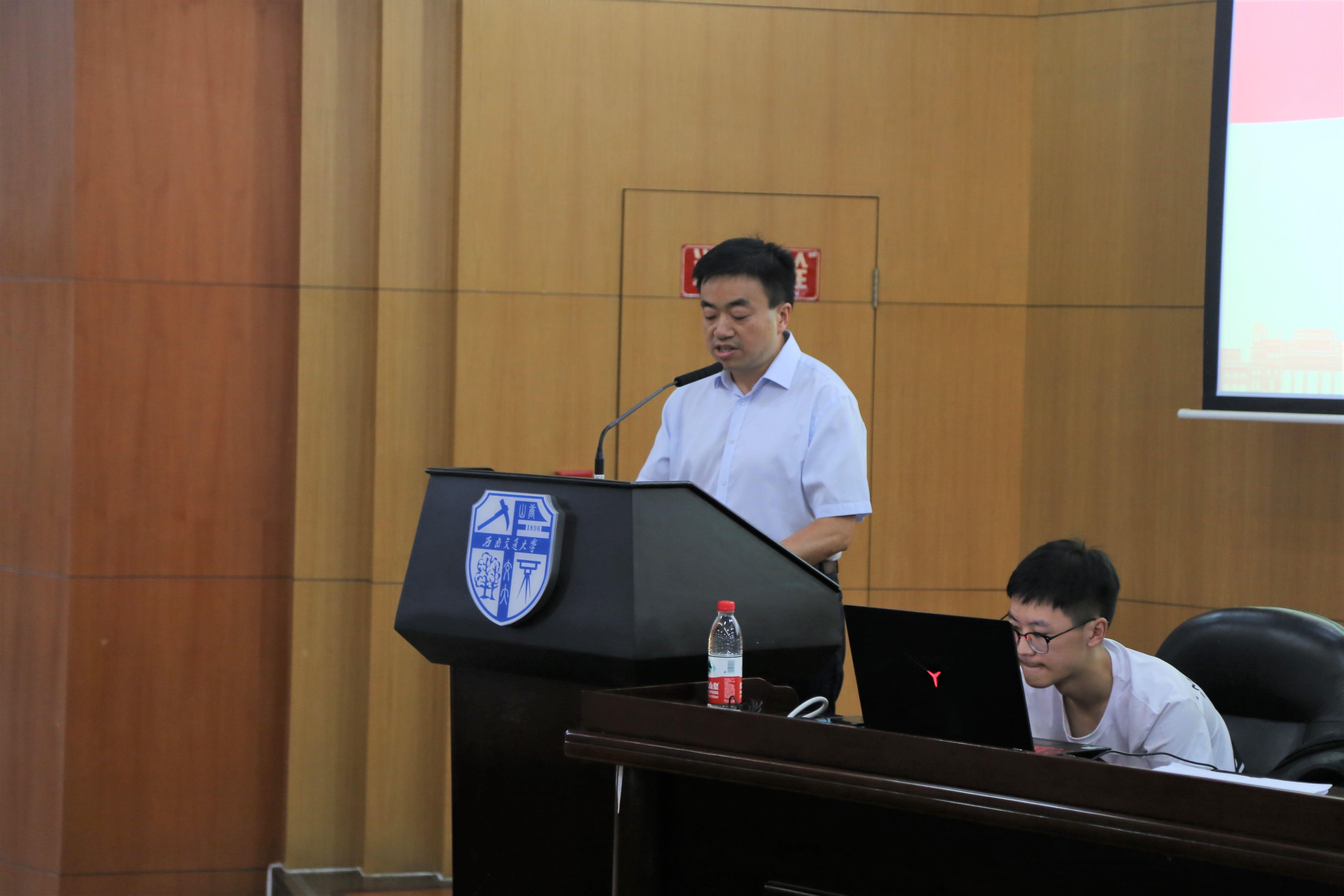 接下来,教师代表黎定仕老师为新同学们分享了自己的求学经历,同时也为同学们敲响了警钟。黎老师指出,学习数学这门基础学科,需要具有坚定的意志,励志笃行方能适应高强度的学习,同时还需要坚信自我。黎老师还说到,学习要将兴趣融合,做到志趣合一才能更长久地在知识的海洋里不断探索与发现。黎老师最后为同学们送上了自己的期望与祝福:静水流深,未来四年、七年、十年或者一辈子仍需大家拥有撞南墙也不回头的勇气,在学习道路上一直走下去。