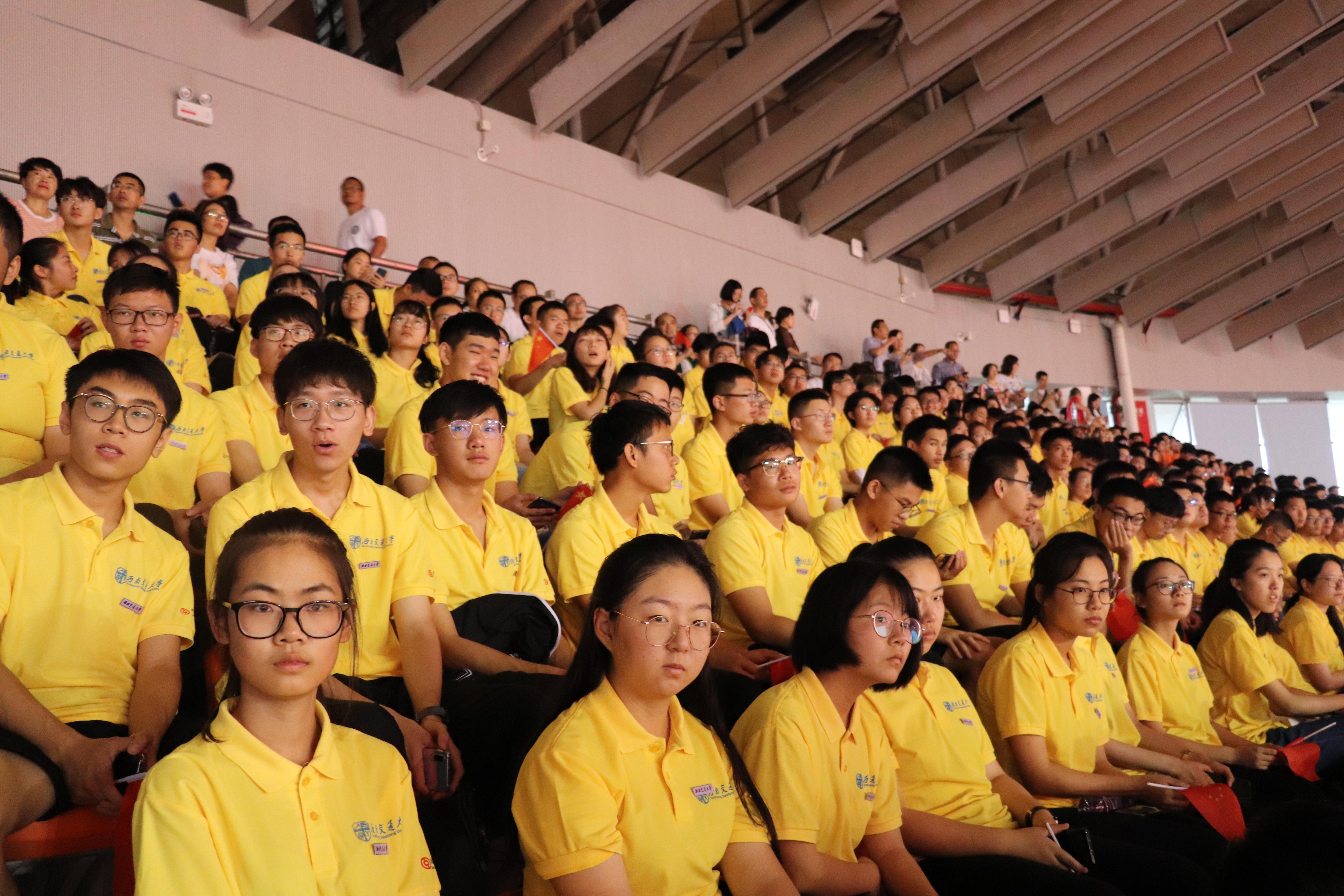 上午8:30,19级本科生开学典礼拉开序幕。kaiyun开云官方网站19级新生辅导员王亚梅,张素子老师和各班协理员同学集体带领着身着黄色交大纪念衫的159名大一新生,在体育馆西门合影留念后,有序进入会场。与此同时,新生家长们也积极参与开学典礼,希望能够同孩子们一起见证这一激动难忘的时刻。
