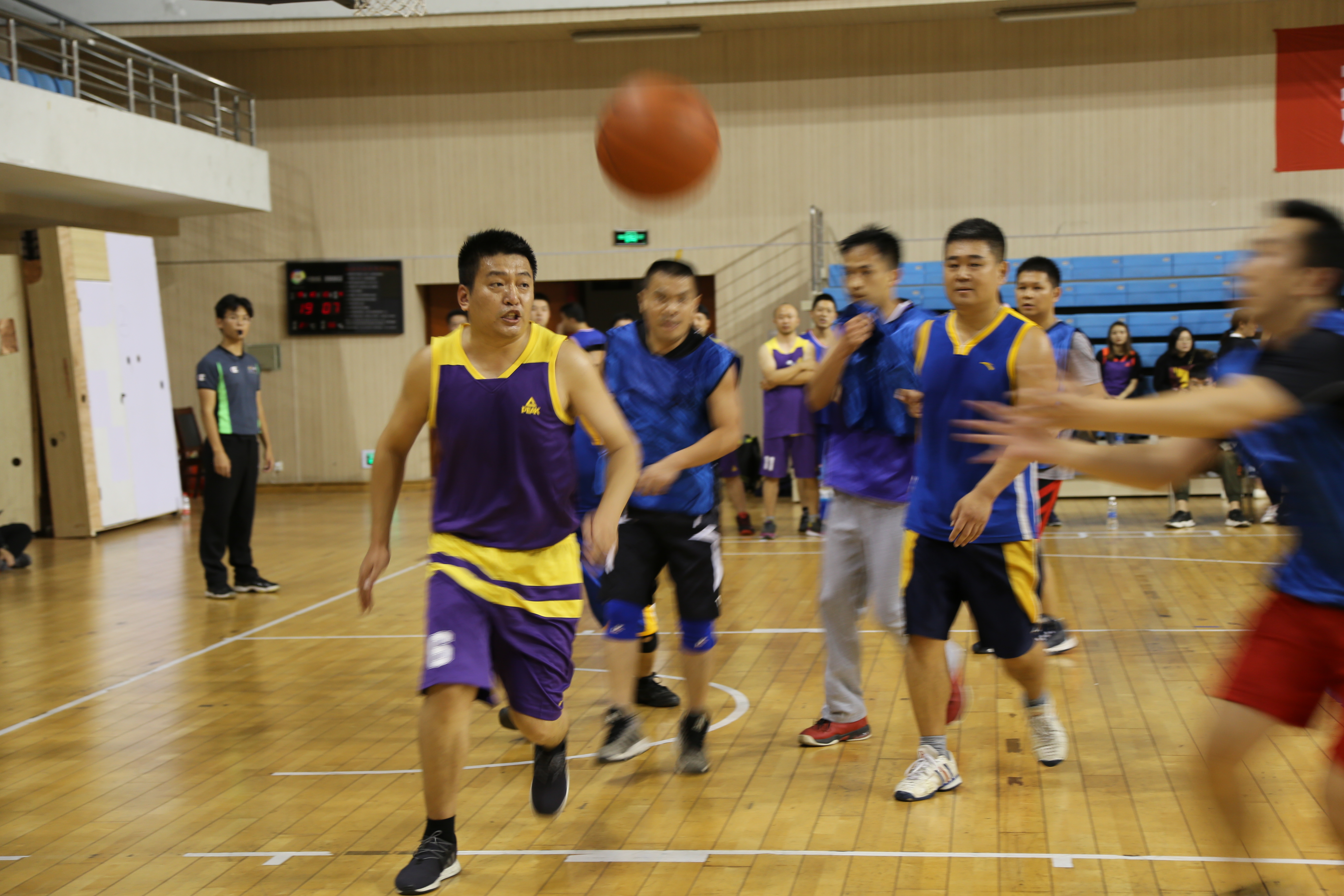 在下半场比赛中,双方队员虽然都体力下降但依旧积极防守、配合。kaiyun开云官方网站的老师们不断突破篮下得分,把握罚篮机会紧咬比分,一度追分到一分之差。焦灼的比分也吸引许多其他学院的老师前来观战、加油鼓劲。
