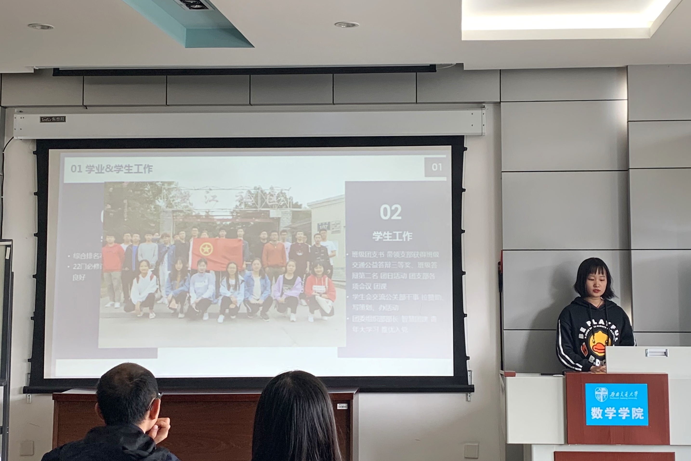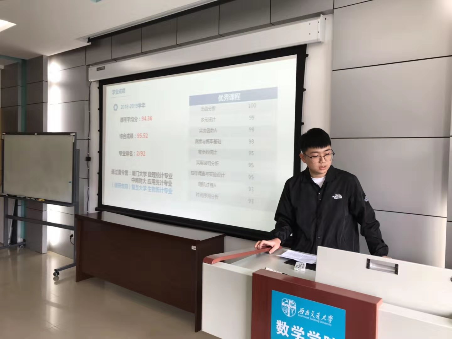随后进行的是极客数学帮助学金答辩,答辩者介绍了自己的家庭经济情况,也展示了自己在学校取得的优异成绩,同时表达了自己在日后继续奋发向上的决心。