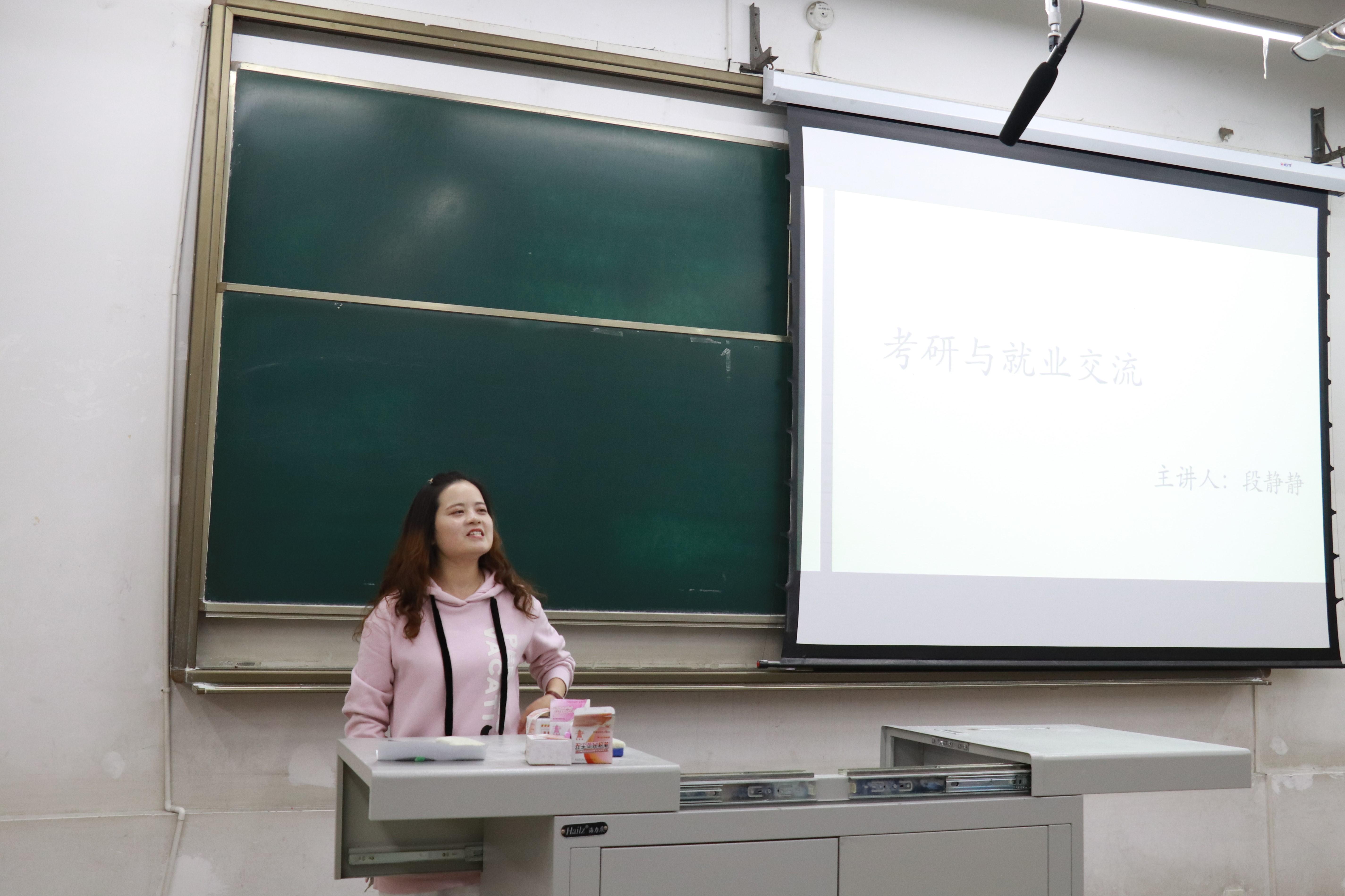 首先,段静静同学对考研与就业的形势进行了分析,并着重在就业方面建议同学们要有一技之长并擅长使用一些电脑工具。紧接着,李昌洲同学详细地阐述了保研、考研与出国的各自优势,鼓励大家做出自己的思考与选择,同时以个人经验讲述了如何把握业余爱好与专业知识学习时间并分享了他的学习经验。张姣同学则是以上课以及参与竞赛的自我状态,告诉同学们要找到志同道合并愿意学习新知识的伙伴,同时向大家分享了个人计划以及学习心得。最后分享的是来自18级的两位优秀学生代表汪立言同学和王震同学。汪立言同学以幽默的口吻希望同学们认清自己并确立个人目标,不在乎过去的水平,努力适应并喜欢自己的专业,了解自己真正的需求并朝该方向努力。王震同学则十分细致的指出了自律与自由的概念与要求,举例强调大学生在自由的氛围里也应该自律,脚踏实地,不去走“捷径”。