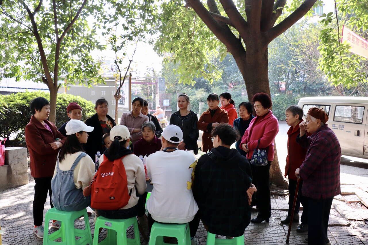 11月14日下午2时,kaiyun开云官方网站2019级拔尖班全体成员安全到达岷江社区,开展了为时两个小时的公益活动。团委书记邓思然老师、辅导员张洋老师、院团委部长参与并开展名为“青春志愿,爱在社区”的社区走访活动。在同学们到达之前,活动小组已将本次活动所需要的桌椅,讲稿以及带给居民的实惠福利等物品备齐。同学们一到达社区,就吸引了部分居民前来询问。拔尖班的志愿者们耐心地为他们讲解活动目的和活动形式,在简短的准备之后,本次活动正式开始。