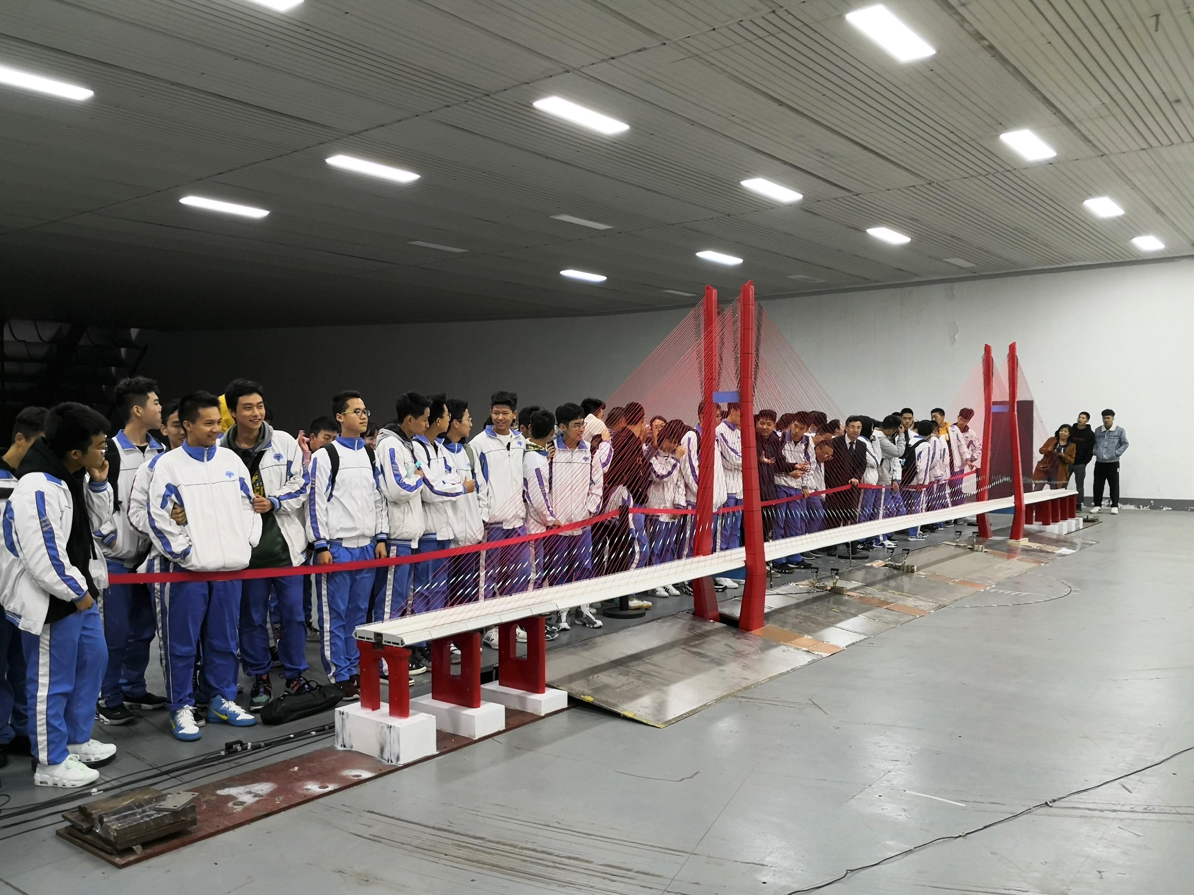 首先,成都七中师生分为两组先后参观了交通运输实验中心和风洞实验室。