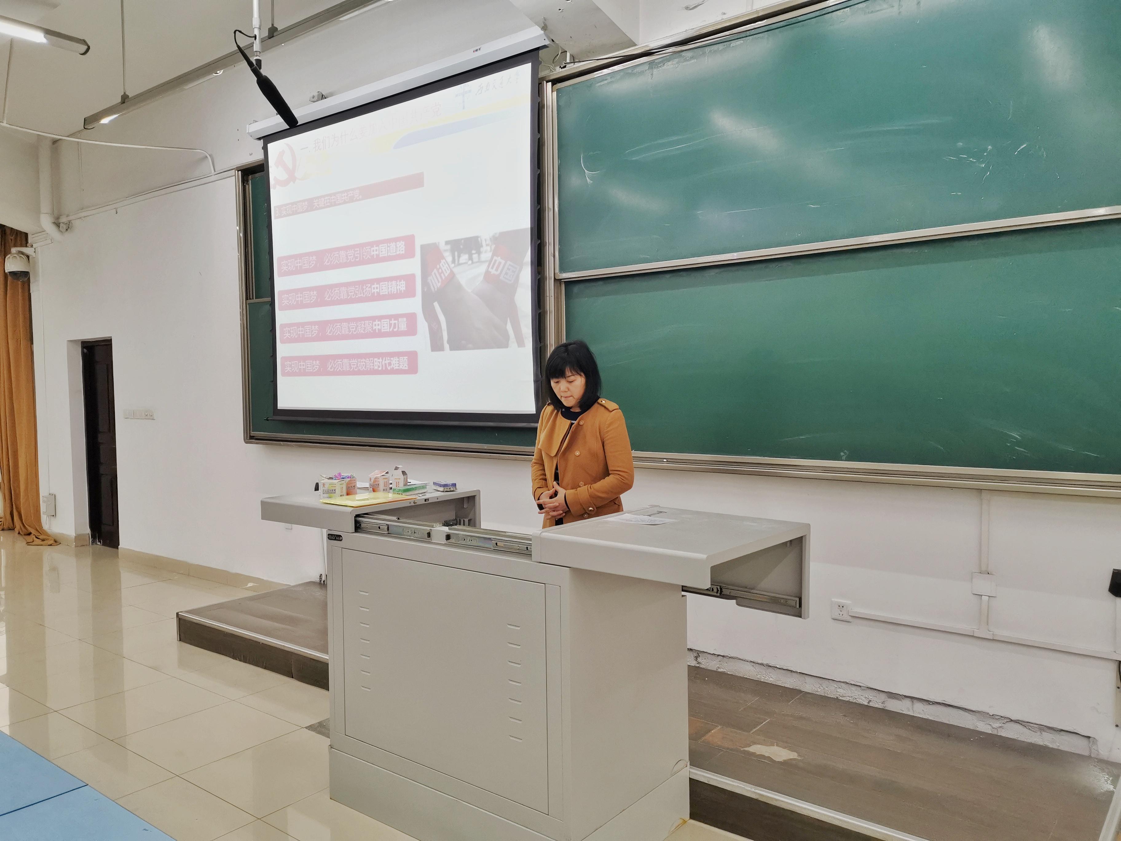 徐海晶老师从我们为什么要入党,我们要了解中国共产党的哪些知识,我们要向优秀中国共产党人学习什么,kaiyun开云官方网站学生党建情况和入党的几点建议等五个方面切入,告诉同学们入党的意义及重要性,并自豪地介绍了老一辈交大校友武胡景,号召同学们向优秀党员校友学习。最后,徐老师热切欢迎并鼓励同学们加入中国共产党。