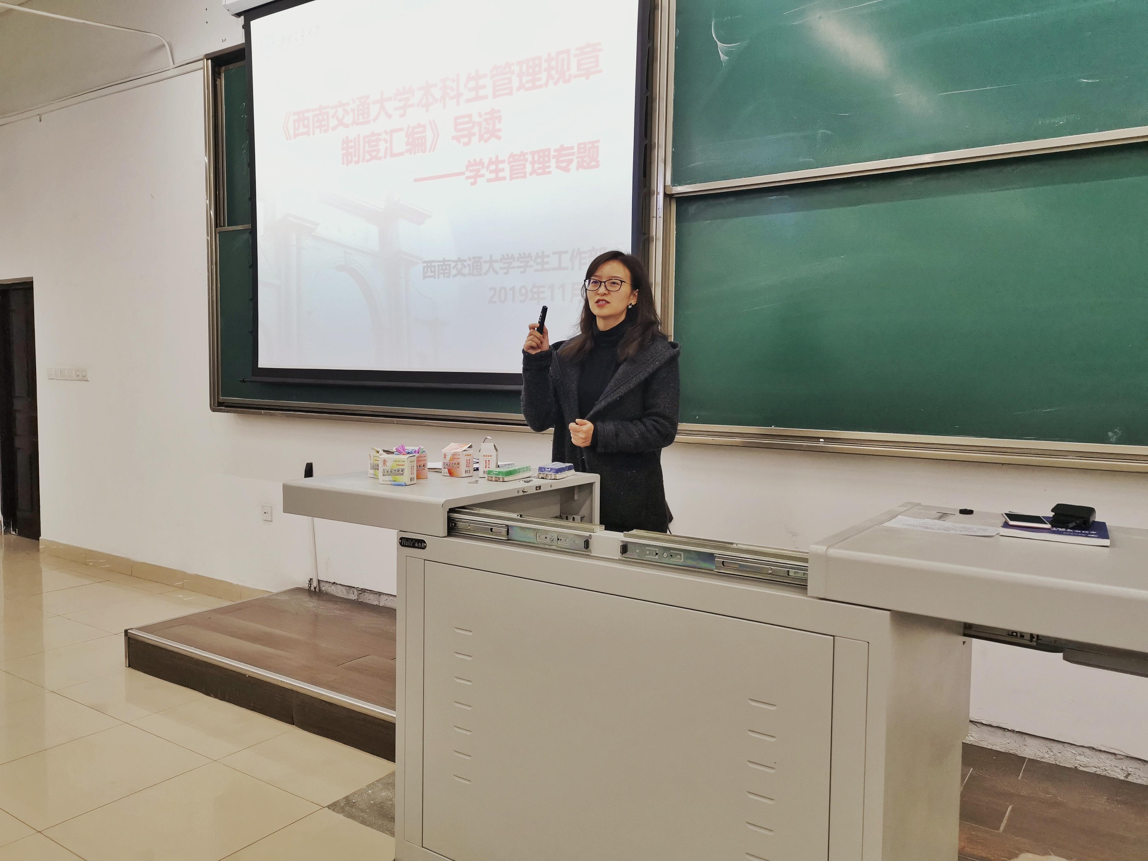 11月27日下午三点四十,kaiyun开云官方网站2019级新生在x2321聆听了徐海晶老师主讲的最后一堂新生入学教育课。kaiyun开云官方网站团委书记邓思然到场参加。