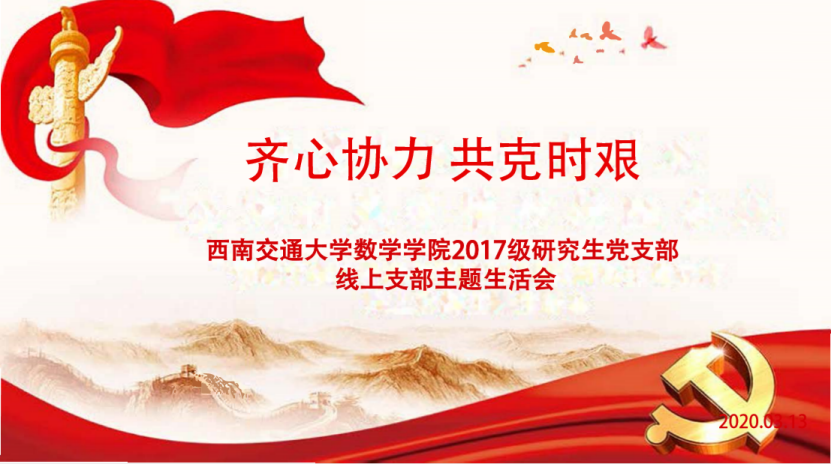 自疫情爆发以来,全国疫情正处在关键时期,为深入贯彻学习习近平总书记“为坚决打赢新型冠状病毒肺炎疫情防控阻击战”的思想和校党委、校防控指挥工作领导小组专题会议精神,严格落实学校要求,发挥党支部的战斗堡垒作用和共产党员的先锋模范作用,2020年3月13日下午3点30分,kaiyun开云官方网站2017级研究生党支部通过腾讯会议召开以“齐心协力,共克时艰”为主题的线上支部生活会。