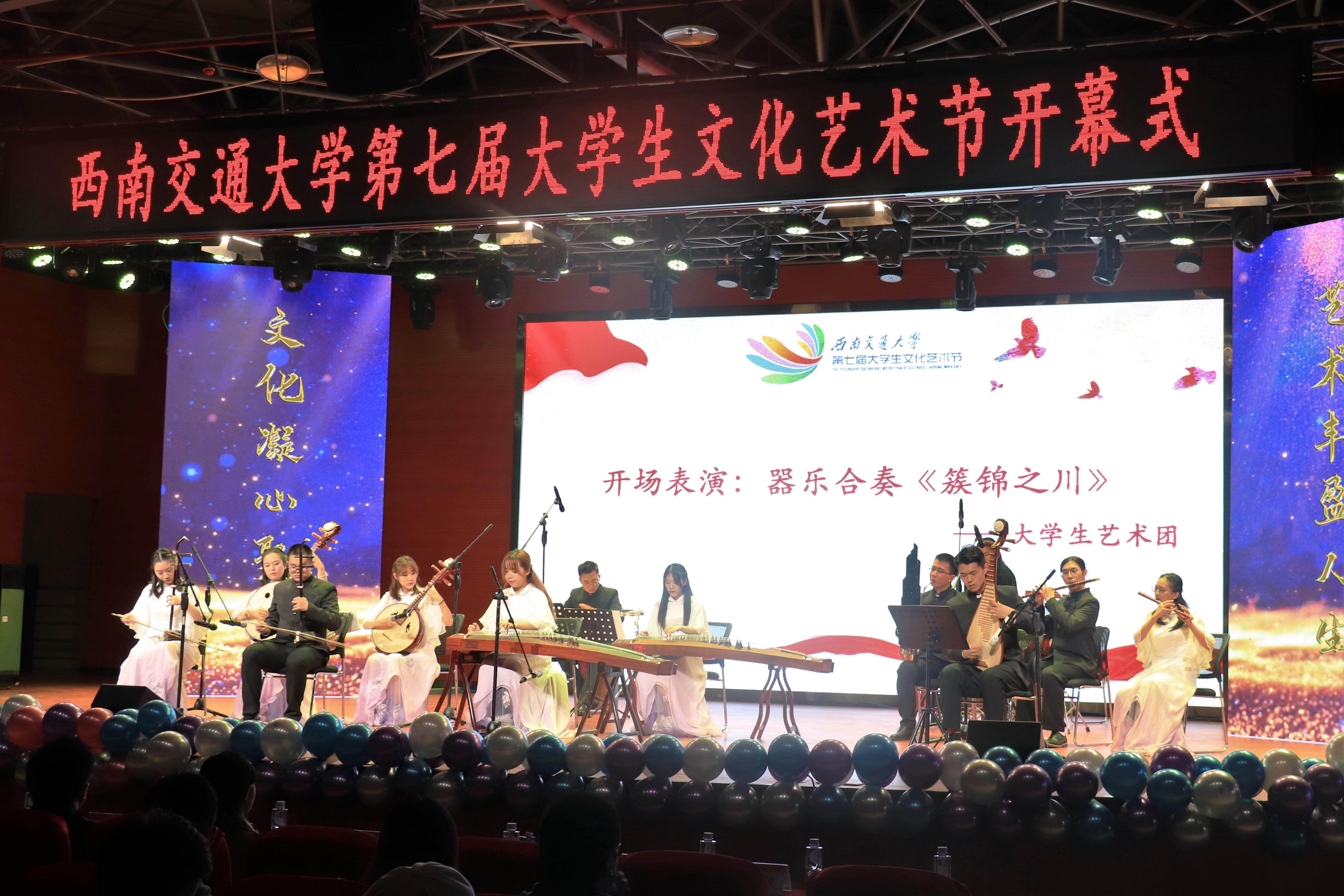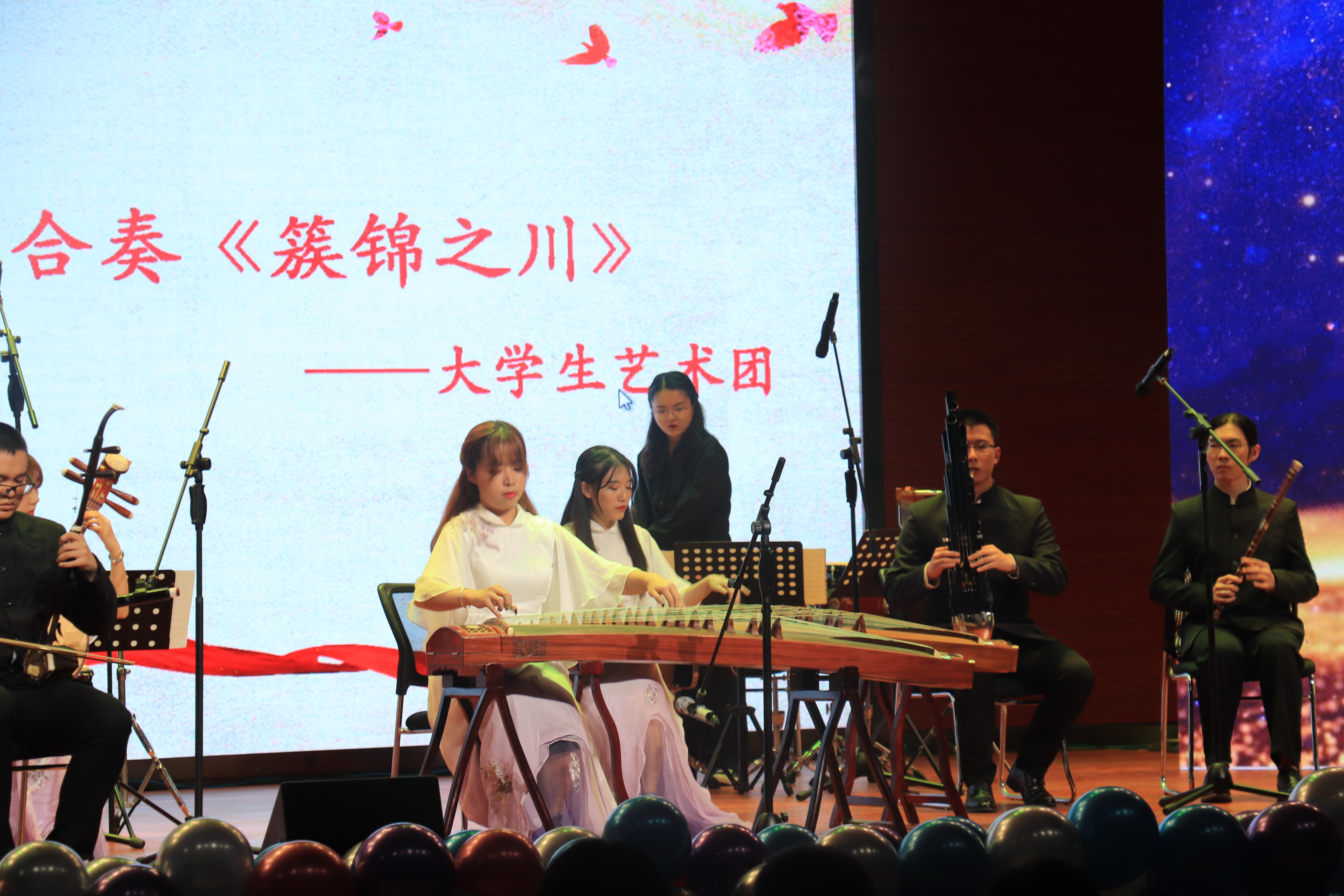 紧接着是由kaiyun开云官方网站大学生艺术团带来的赏心悦目的艺术表演。大学生艺术团身着民族特色服饰,为现场观众献上绝妙的表演。其中,器乐合奏《簇锦之川》气势宏大,如钧天广乐;《昼夜行》欢快悠扬,余音绕梁。
