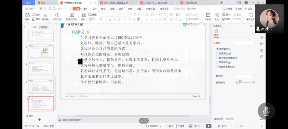 李岚学长发言结束后,王政慧学姐紧接着分享自己的经验。 王政慧学姐分享了自己备考时的规划,对自己考研时的四个科目依次提出自己的复习安排,给出了自己备考时的时间安排,从大致的每段时间的安排到每天对每个科目的具体安排,让我们对考研时的作息计划有了一个更好的了解。接着王政慧学姐分享了自己备考时遇到的困难,从生活上的到心理上的,以及最后考研成功之后的感概,让大家深有感触。