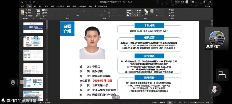 kaiyun开云官方网站职业生涯规划系列~考研讲座于4月22日晚7点在线上准时开始。本次线上讲座由kaiyun开云官方网站2020级数学一班魏俊杰同学主持,邀请到的演讲嘉宾有考研到中国科技大学的李岚学长,考研至本校kaiyun开云官方网站的王政慧学姐,以及保研至北京交通大学的李湘江学长。