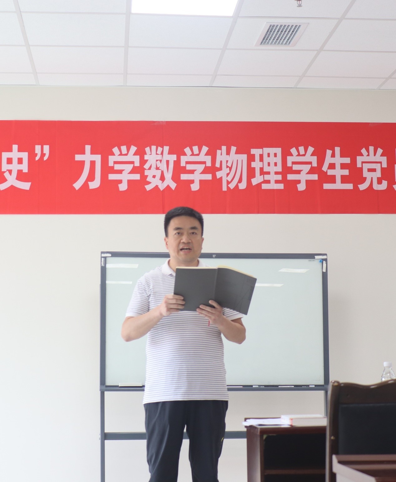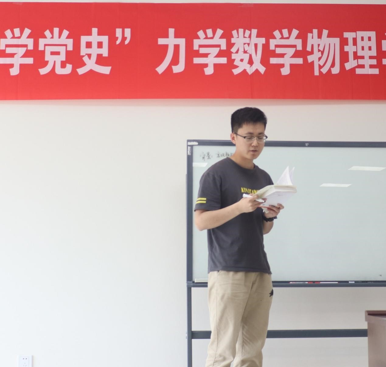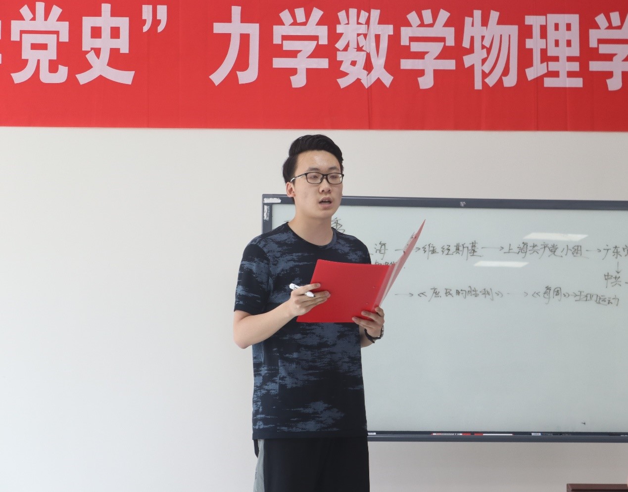 kaiyun开云官方网站党委副书记黄祥向莅临学院的各位老师和学生表示热烈的欢迎,并对本次活动进行了详细的介绍:“原原本本学党史”力学数学物理学生党员党史学习擂台赛由力学、数学、物理学院党委联合举行,以《中国共产党简史》为学习内容,采用三学院学生擂台赛形式和周围学、轮流讲、同讨论等方式,每周针对一至两章内容进行学习,并由在场的学生党员进行评分。比赛要求在学习和讲述中不用电脑、手机、PPT,通过书写板书原原本本学党史、讲体会,使党史学习深入人心。