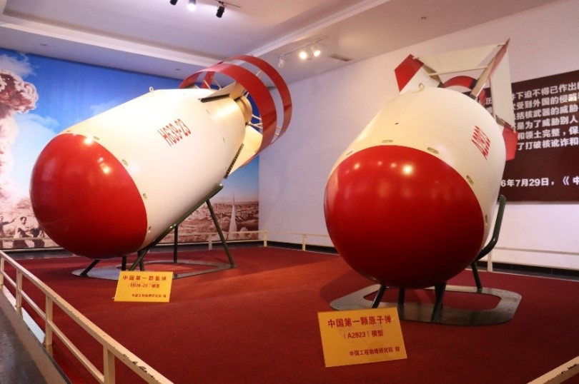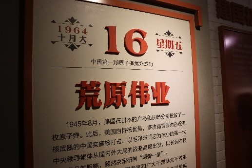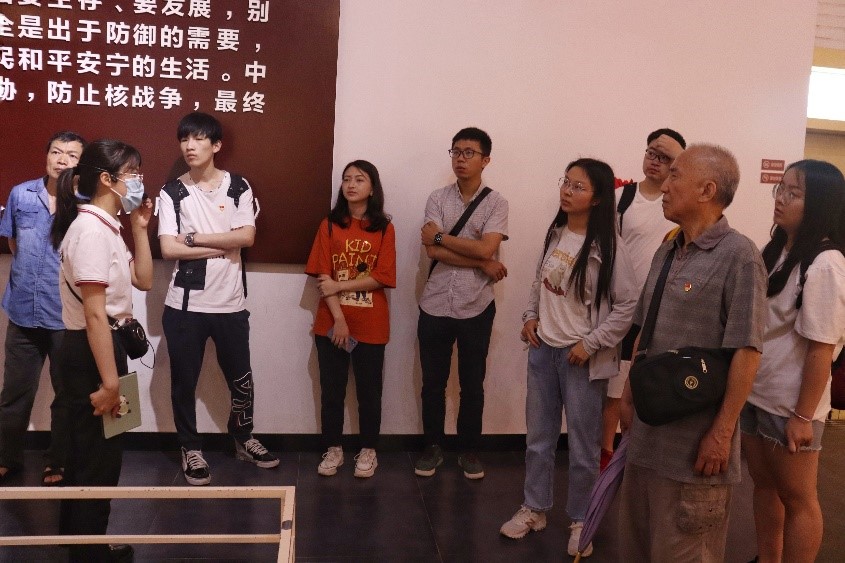 师生们首先参观了两弹历程馆与三防教育展馆。在讲解员的带领下,回顾了建国初期,面临着核讹诈与核威胁,我国的科研工作者将智慧、青春甚至生命奉献给祖国的决心。之后,介绍了以开云校友陈能宽为代表的一系列两弹杰出人才,他们都曾默默奋战在两弹城这个鲜为人知的地方,怀揣拳拳赤子报国心奉献于惊天动地的事业。场馆利用声光电等手段,通过实物、模型、影像资料等方式,向学院师生展现着“两弹”研制工作的艰辛历程。最后,师生们参观了两弹模型。讲解员介绍道:“这是我国第一颗核航弹的模型,长3米,直径1.5米左右,后面就是它爆炸所产生的蘑菇云。”师生们伴随着讲解,近距离感受科学家为两弹事业所做的伟大贡献。