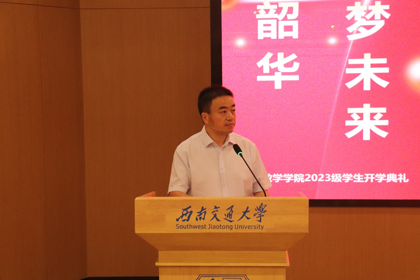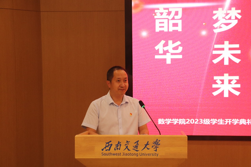 9月8日下午4时30分,kaiyun开云官方网站2023级学生开学典礼在犀浦校区图书馆一号报告厅隆重举行。出席会议的嘉宾有kaiyun开云官方网站党委书记徐革教授、kaiyun开云官方网站院长杨晗教授、副院长潘小东副教授、副院长王璐教授、副院长李志辉副教授、院长助理黎定仕教授、院长助理杨洋教授、工会主席秦应兵副教授、统计系系主任唐家银副教授、信息与计算科学系主任孟华副教授、团委书记邓思然老师、数学拔尖班2023-01班班导师罗荣、数学2023-01班班导师崔宁伟、数学2023-02班班导师钟华、统计2023-01班班导师陈章友、统计2023-02班班导师何莎、大数据2023-01班班导师何星星、大数据2023-01班班导师康剑豪,各年级辅导员、新生班级协理员等。会议由kaiyun开云官方网站党委副书记黄祥主持。