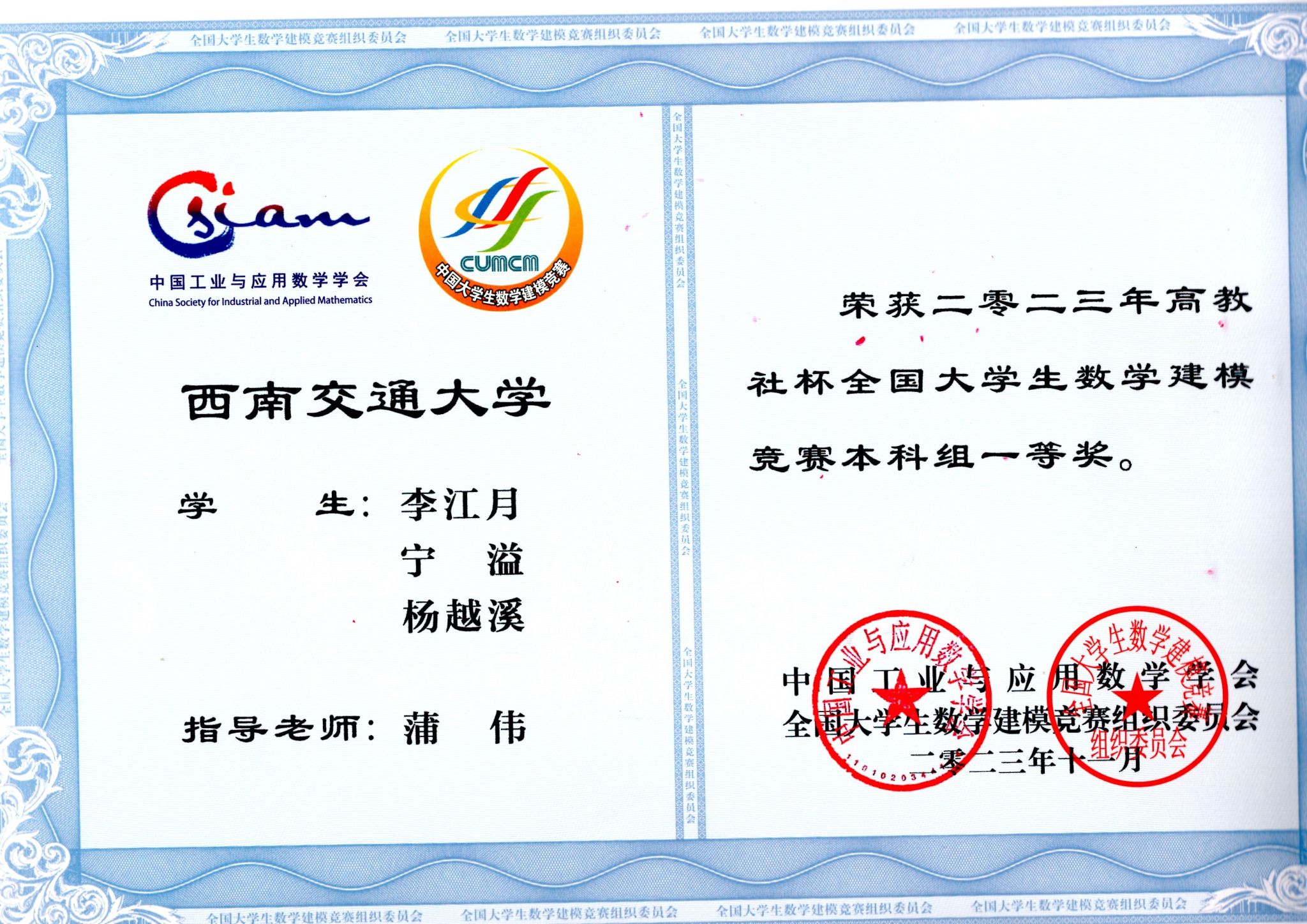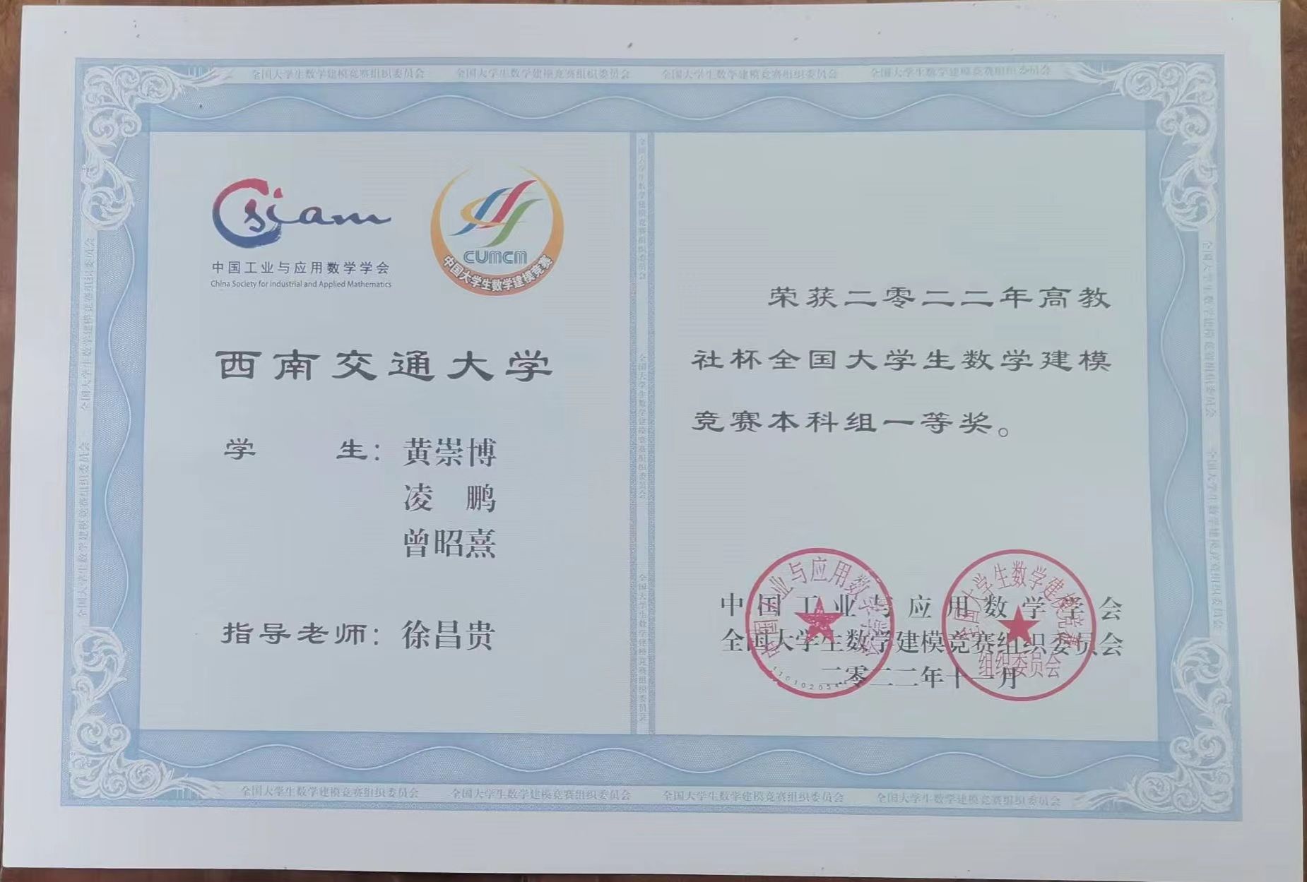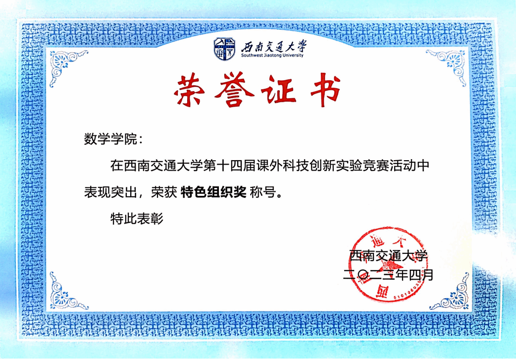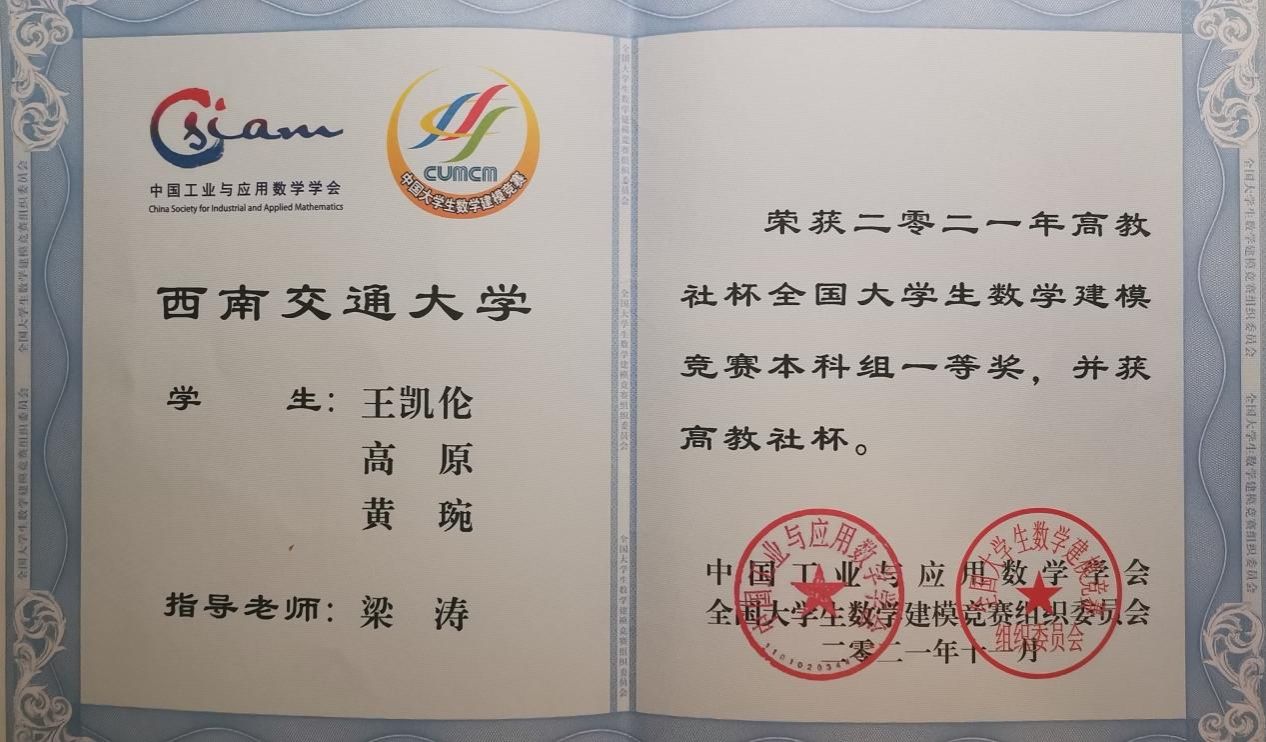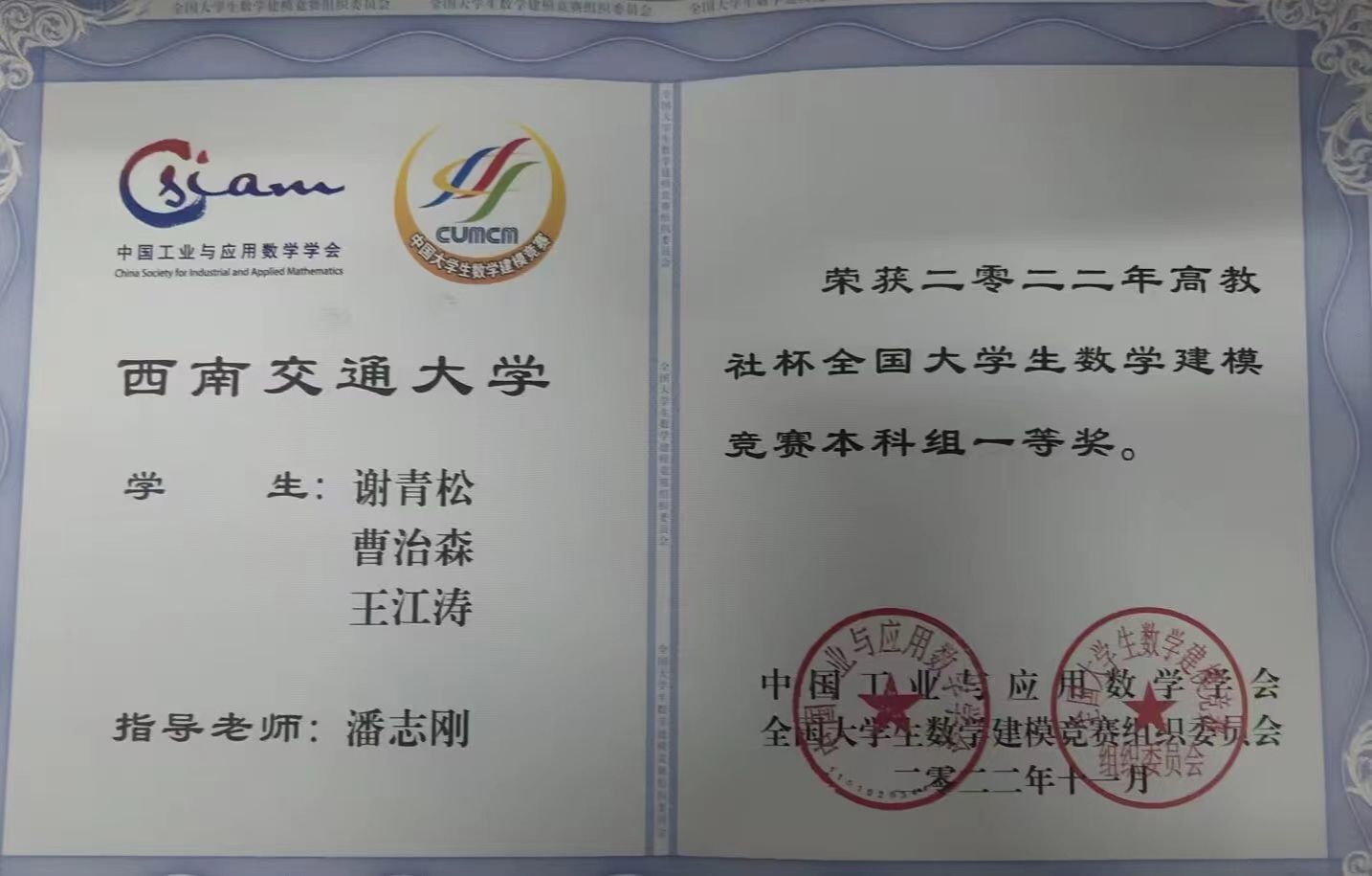 同时,作为西南交大大学生创新教育基地,数学实验中心承担着全校本研各类数学建模竞赛活动,包括“高教杯”全国大学生数学建模竞赛、美国数学建模竞赛、苏北数学建模竞赛、华中数学建模竞赛、电工杯数学建模竞赛、“华为杯”全国研究生数学建模竞赛及校内各种竞赛活动。近几年,中心参与各类数学建模竞赛成绩突出,“高教杯”大学生数学建模竞赛屡获全国一等奖、二等奖等重要奖项,其中2021年斩获“高教社杯”全国唯一最高奖,取得历史性突破。总成绩在四川省所有高校中名列第一,全国前列。